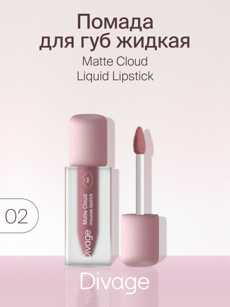 DIVAGE Помада для губ жидкая матовая Matte Cloud Liquid Lipstick, 3 мл, 02