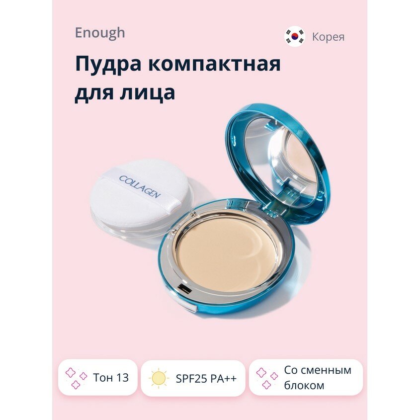 Пудра компактная для лица ENOUGH COLLAGEN HYDRO MOISTURE TWO-WAY CAKE SPF25 PA++, со сменным блоком, тон 13