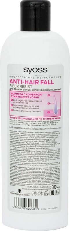 Syoss бальзам Anti-hair Fall Fiber Resist для тонких волос склонных к выпадению, 450 мл
