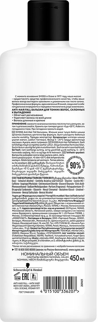 Бальзам-ополаскиватель для волос Syoss ANTI-HAIR FALL от выпадения, 450 мл