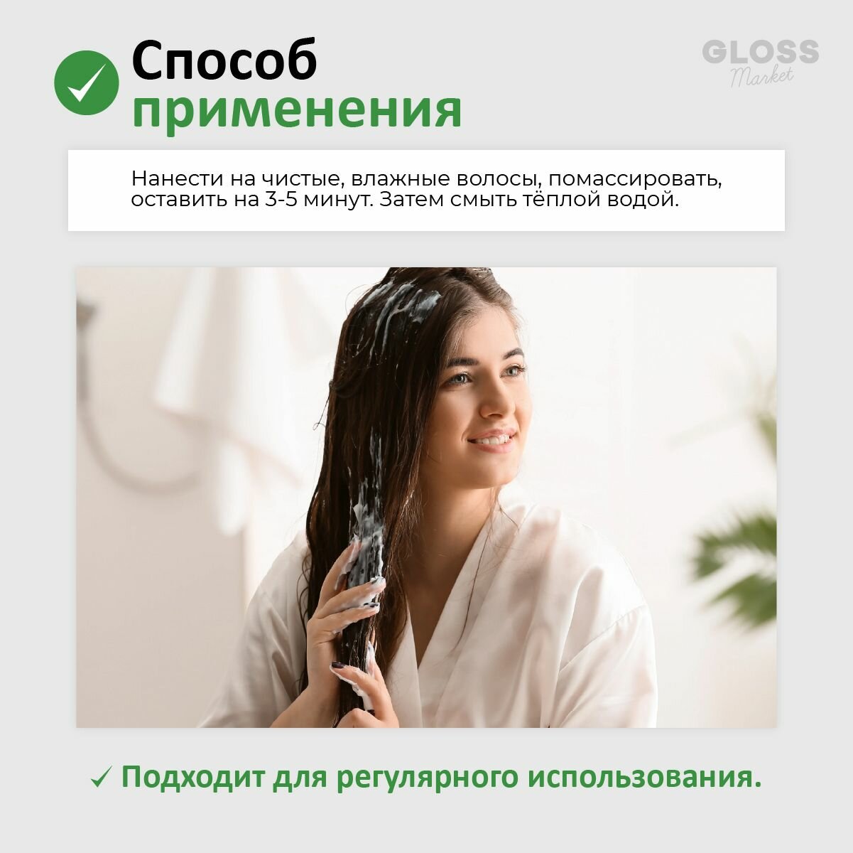 | Плюсы: | Разглаживает и освежает волосы |