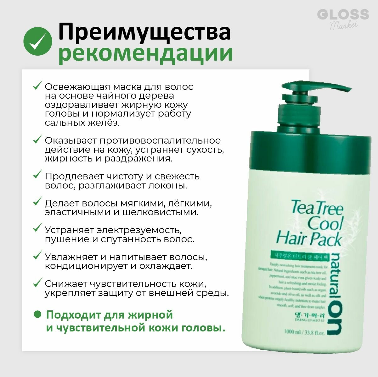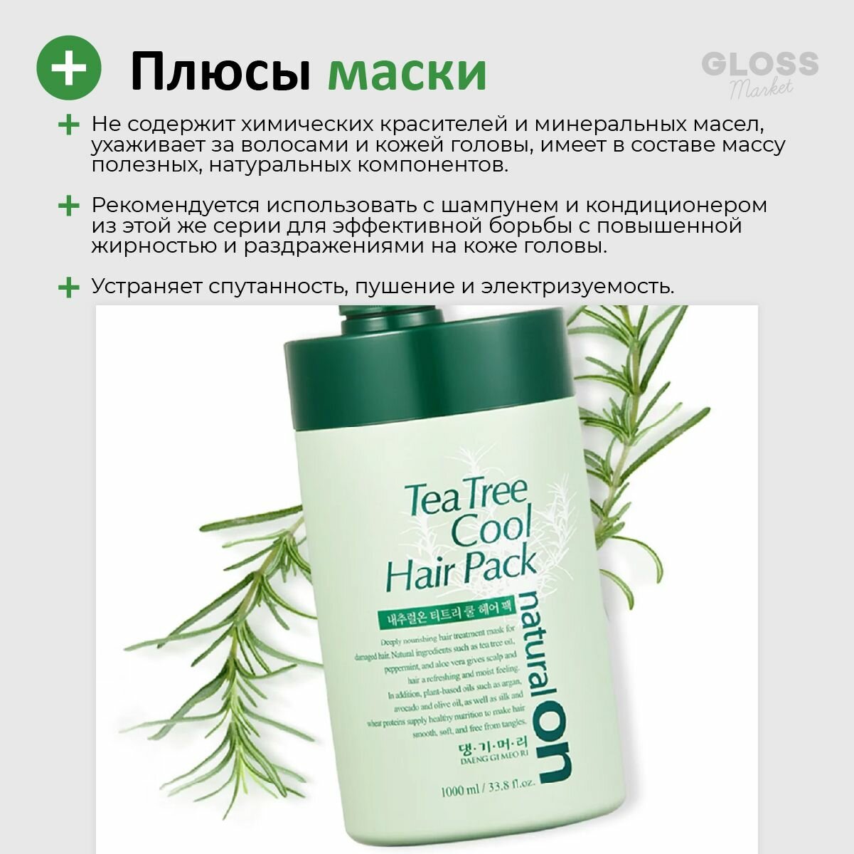 Ниже Вы можете прочитать отзывы на Маска для волос на основе чайного дерева Daeng Gi Meo Ri Natural On Tea Tree Cool Hair Pack, 1000 мл, ознакомится с подробными характеристиками, посмотреть интересные обзоры и фотографии на Маска для волос на основе чайного дерева Daeng Gi Meo Ri Natural On Tea Tree Cool Hair Pack, 1000 мл.