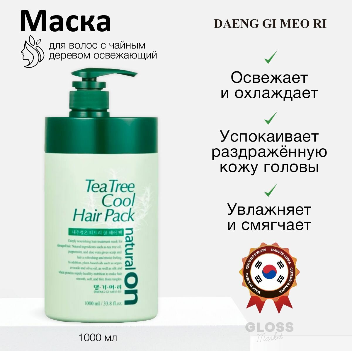 Купить Маска для волос на основе чайного дерева Daeng Gi Meo Ri Natural On Tea Tree Cool Hair Pack, 1000 мл