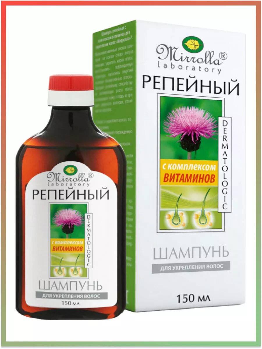 Шампунь репейный Mirrolla, комплекс витаминов для укрепления волос, 150 мл./В упаковке шт: 1