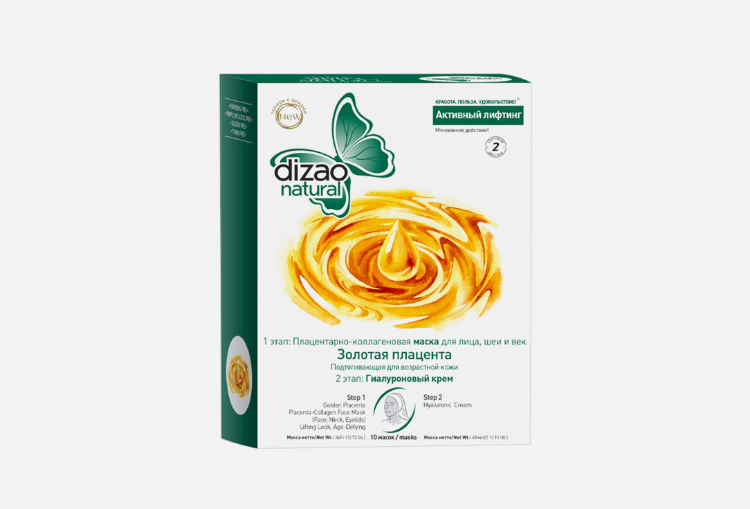 Маска Dizao (Дизао) для лица и шеи Плацентарно-коллагеновая Золотая плацента Активный лифтинг 10 шт.