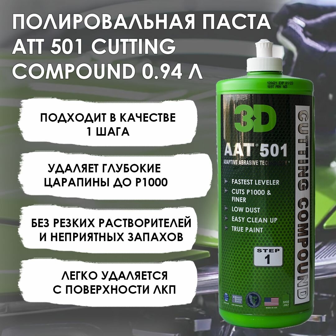 3D AAT 501 Cutting Compound Полировальная паста (1 шаг), 940мл интересное:
