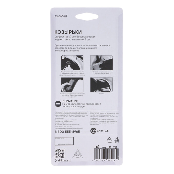 Козырьки (дефлекторы) для боковых зеркал зад. вида, защитные, 2 шт. AV-SM-01 AIRLINE