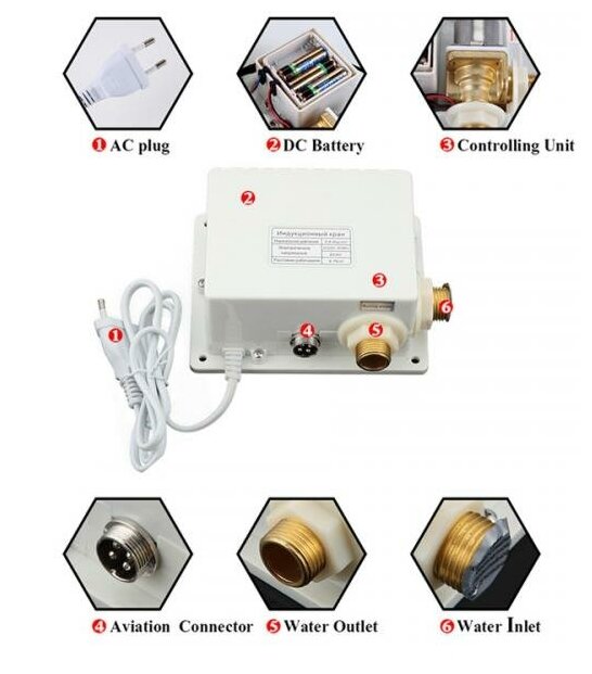 | Дополнительная информация | резервное питание 6 Вольт (4 батареи типа "АА"), световой индикатор разряда батарей в окошке сенсора; потребляемая мощность до 2 Вт; батарейки в комплект не входят; зона срабатывания датчика 25-30 см |