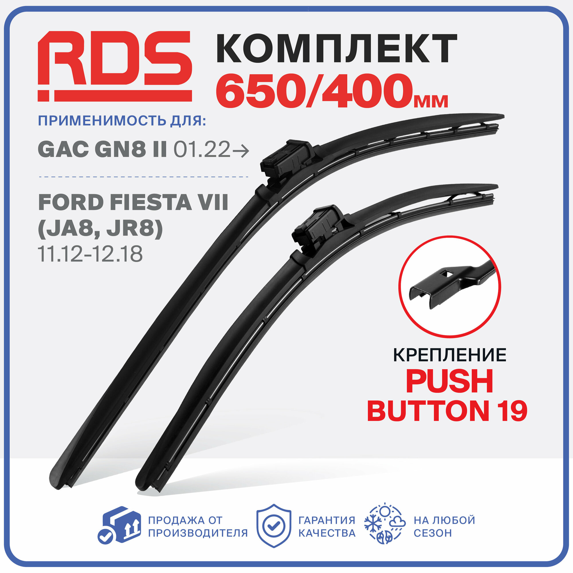 Купить 650 400мм. PushButton 19. Бескаркасные щетки стеклоочистителя RD5 дворники на GAC GN8 II ГАК ГН8, Ford Fiesta VII Форд Фиеста; Зимние; Летние