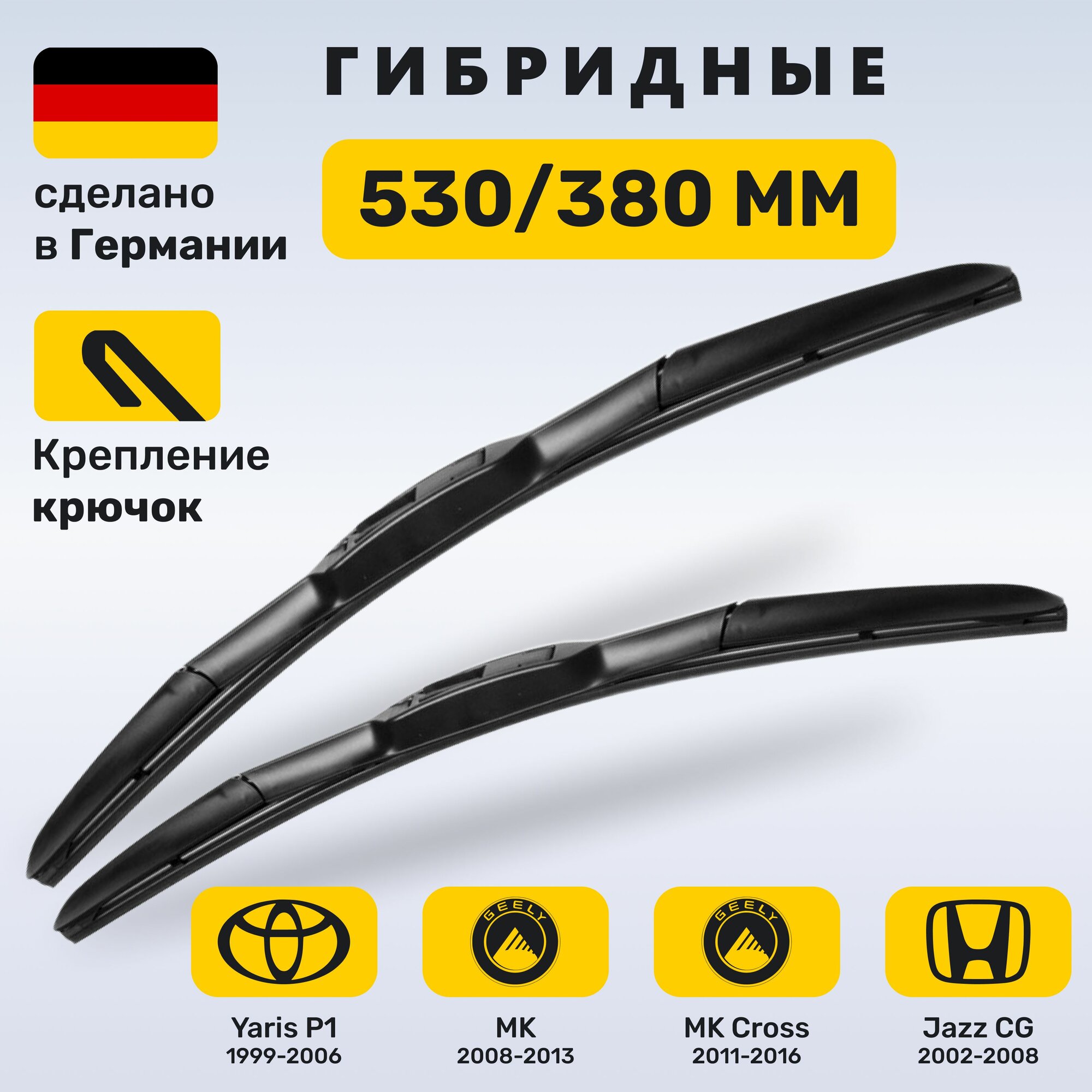 Купить (Германия) 530/380, Дворники Джили МК (2008-2013), Хонда Джаз (2002-2008), Тойота Ярис