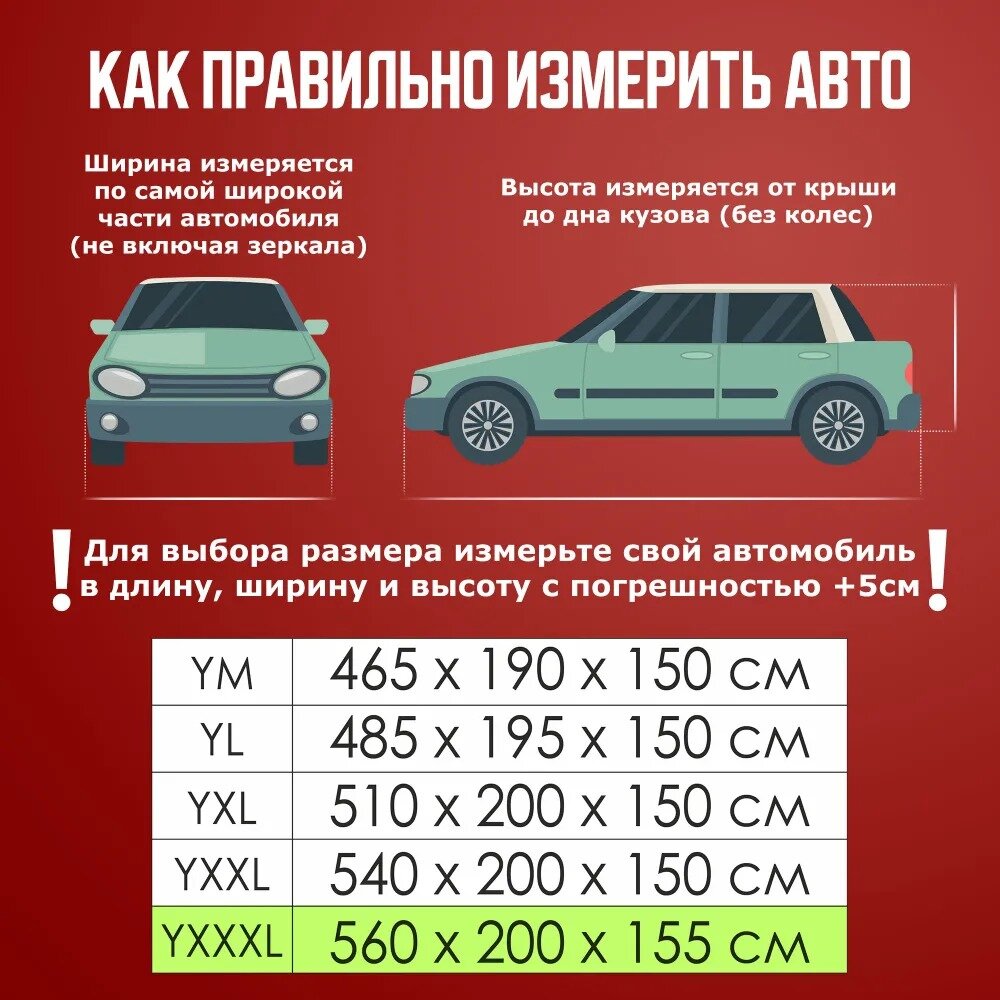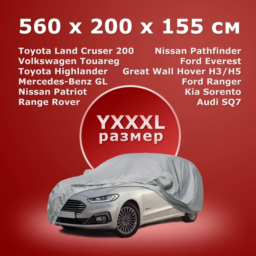 СохранитьЧехол для автомобиля Takara PEVA-SUV (размер YXXXL) 560 х 202 х 155 см, защитный от снега, солнца и дождя / водонепроницаемый чехол / тент для автомобиля интересное: