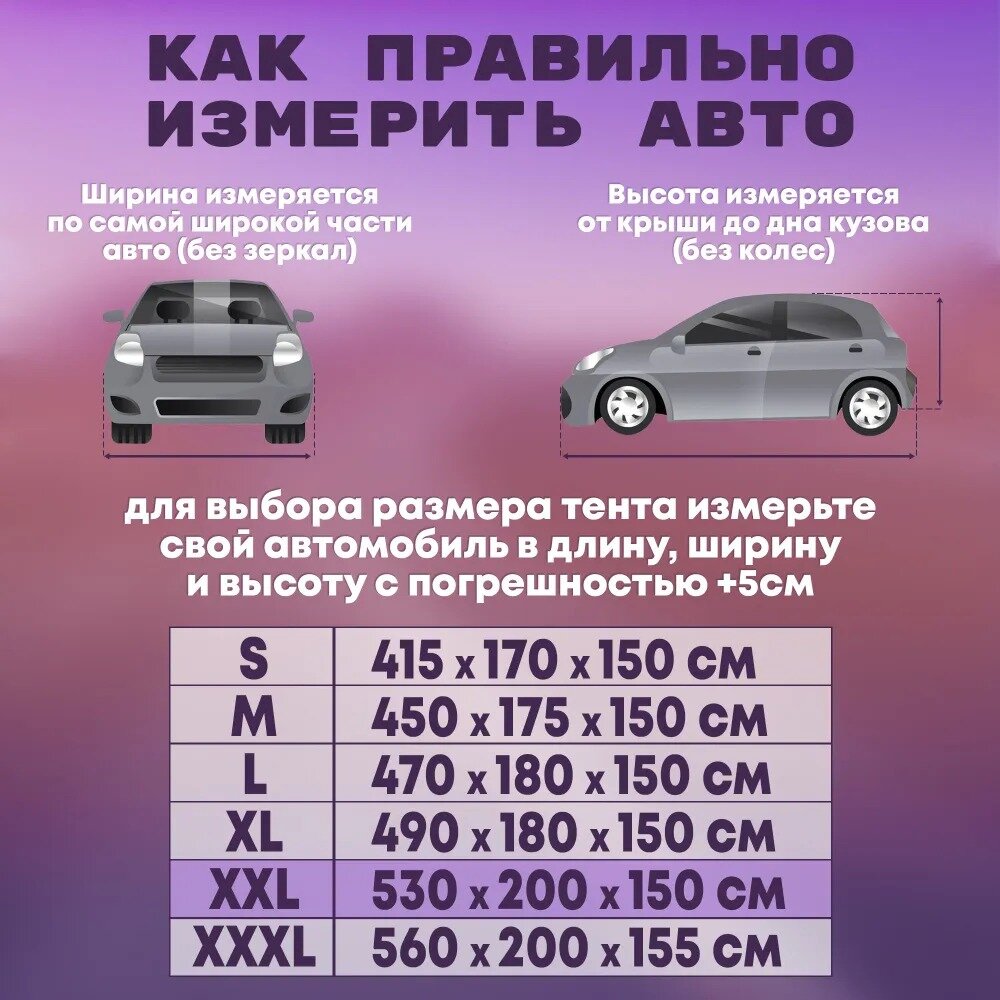 Чехол для автомобиля Takara 210D (размер XXXL) 560 х 200 х 155 см,, защитный от снега, солнца и дождя / водонепроницаемый