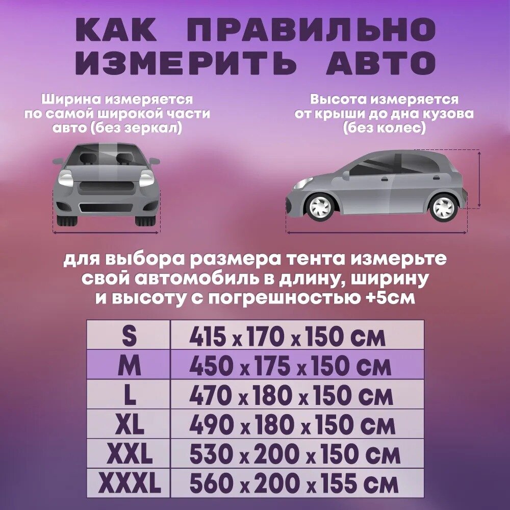 Чехол для автомобиля Takara 210D (размер M) 450 х 170 х 150 см, защитный от снега, солнца и дождя / водонепроницаемый