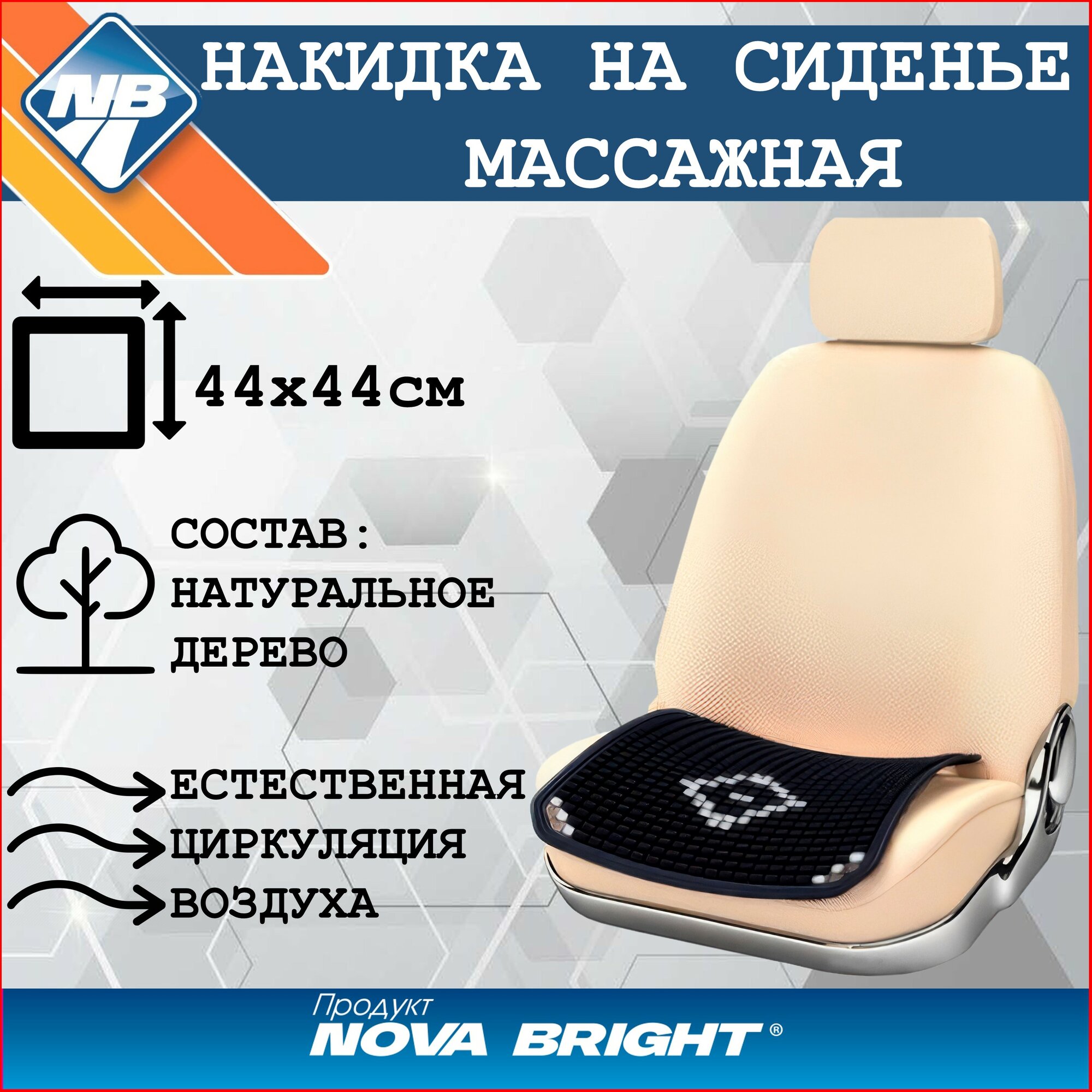 Накидка (коврик) на сидение "Nova Bright" массажная деревянная, черная с рисунком, противоскользящая основа интересное: