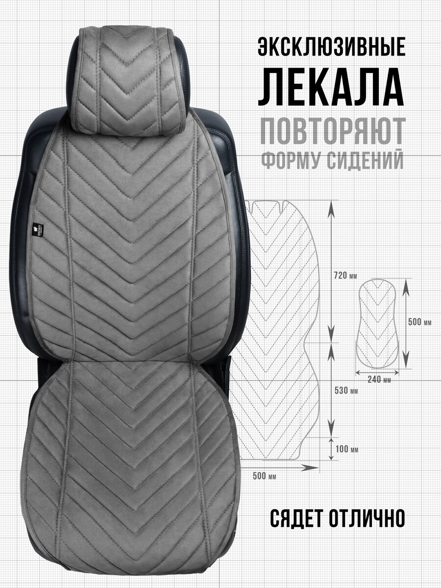 Пара накидок из алькантары на переднее сиденье автомобиля. Модель L SV. Серый