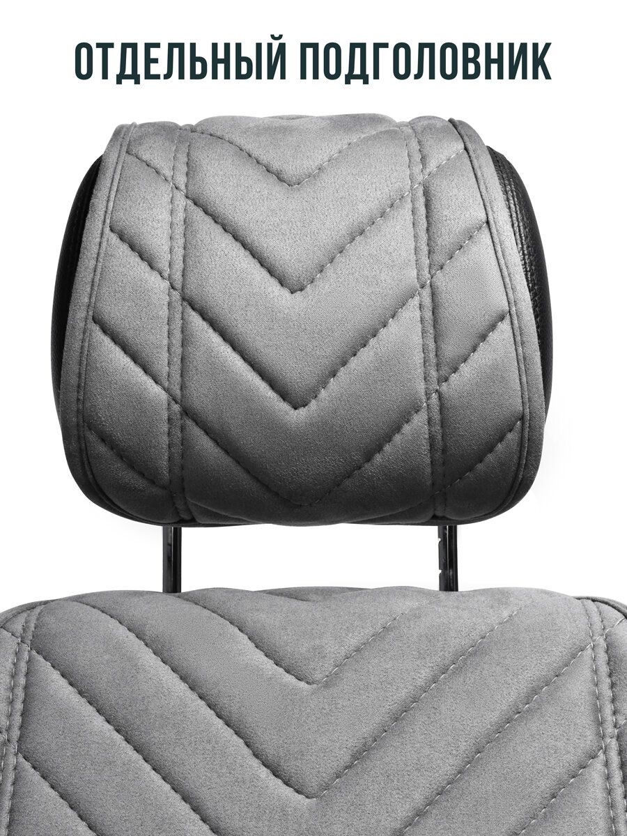 Полный комплект накидки из алькантары на сиденья автомобиля. Модель L SV PK. Серый