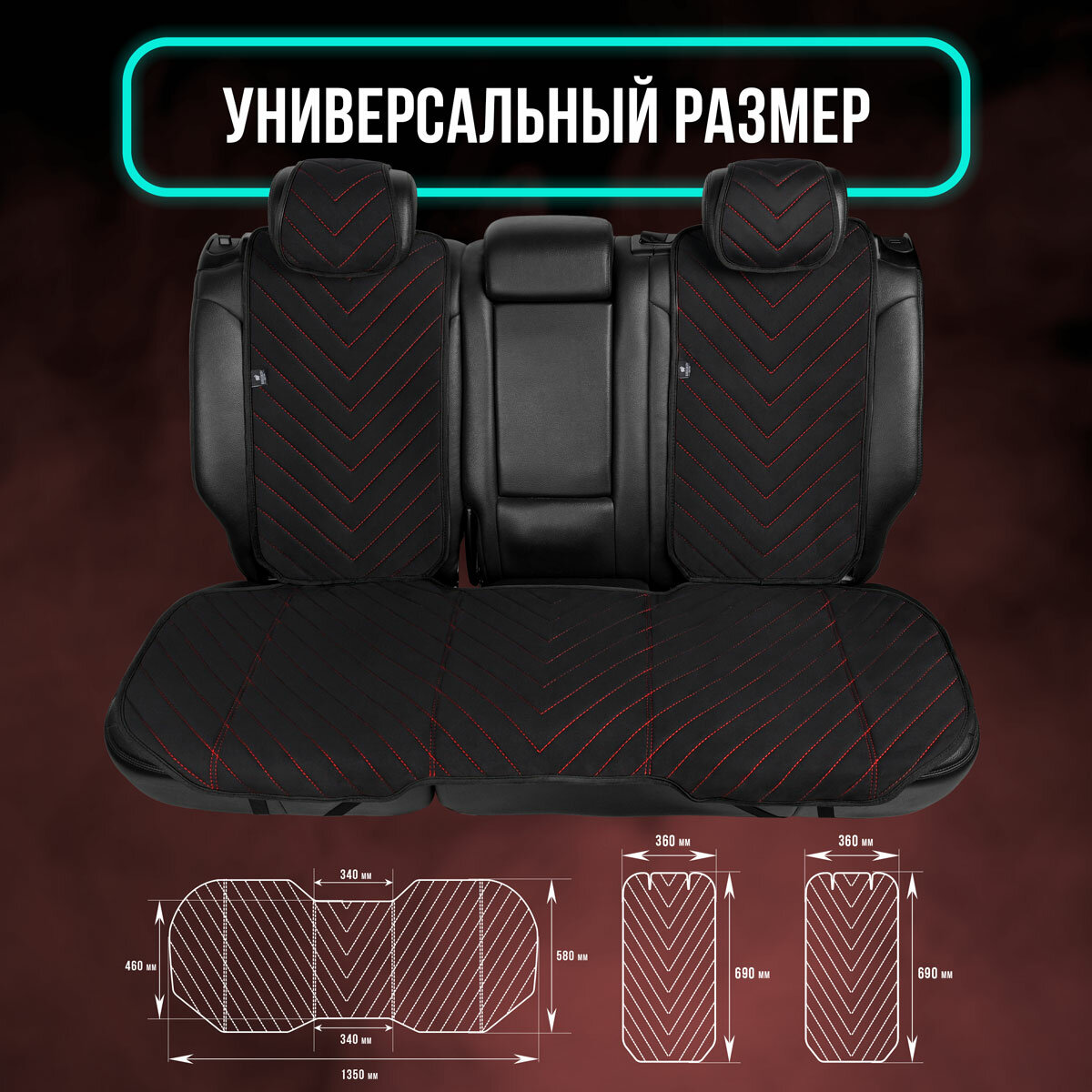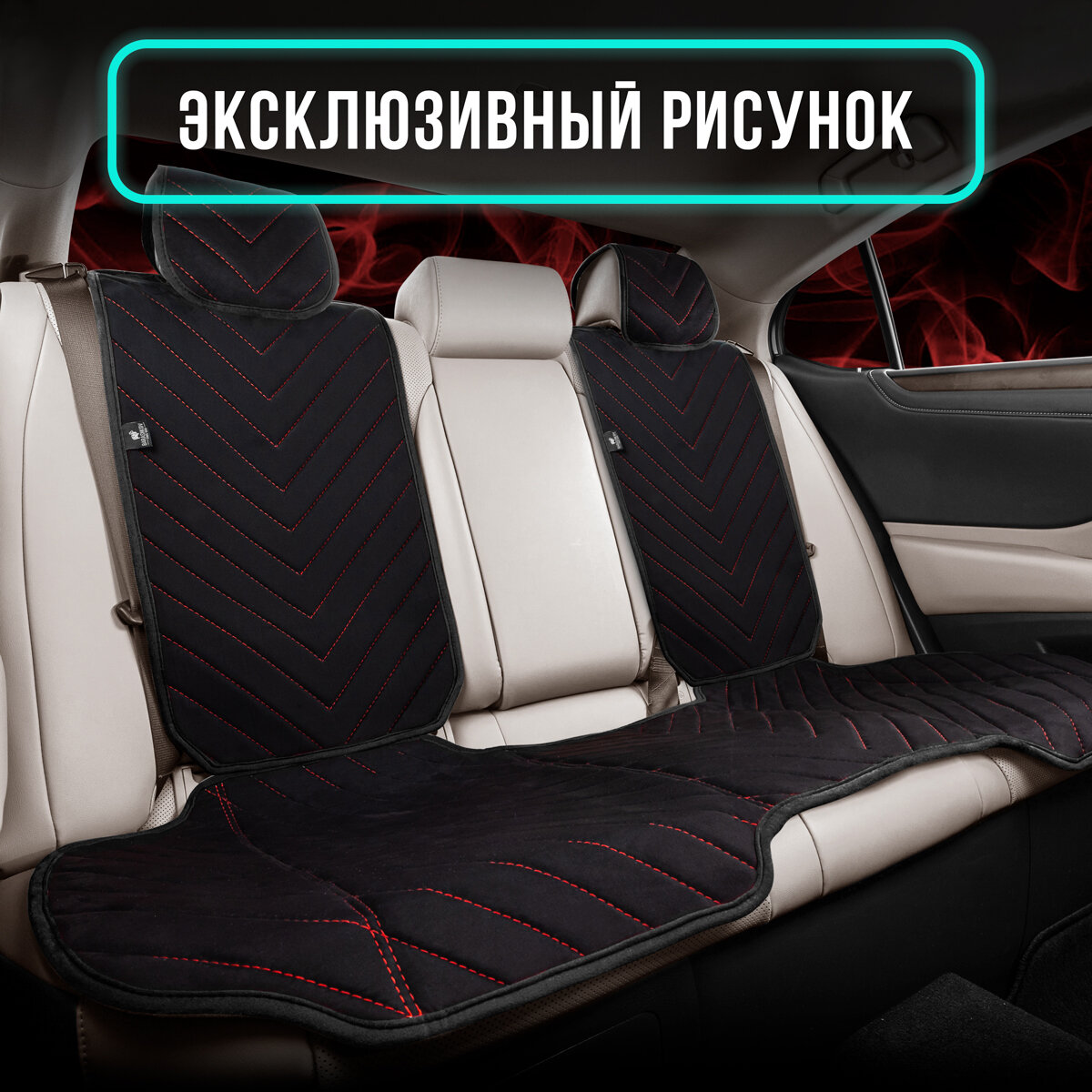 СохранитьПолный комплект накидки из алькантары на сиденья автомобиля. Модель L SV PK. Черный, красная строчка интересное:
