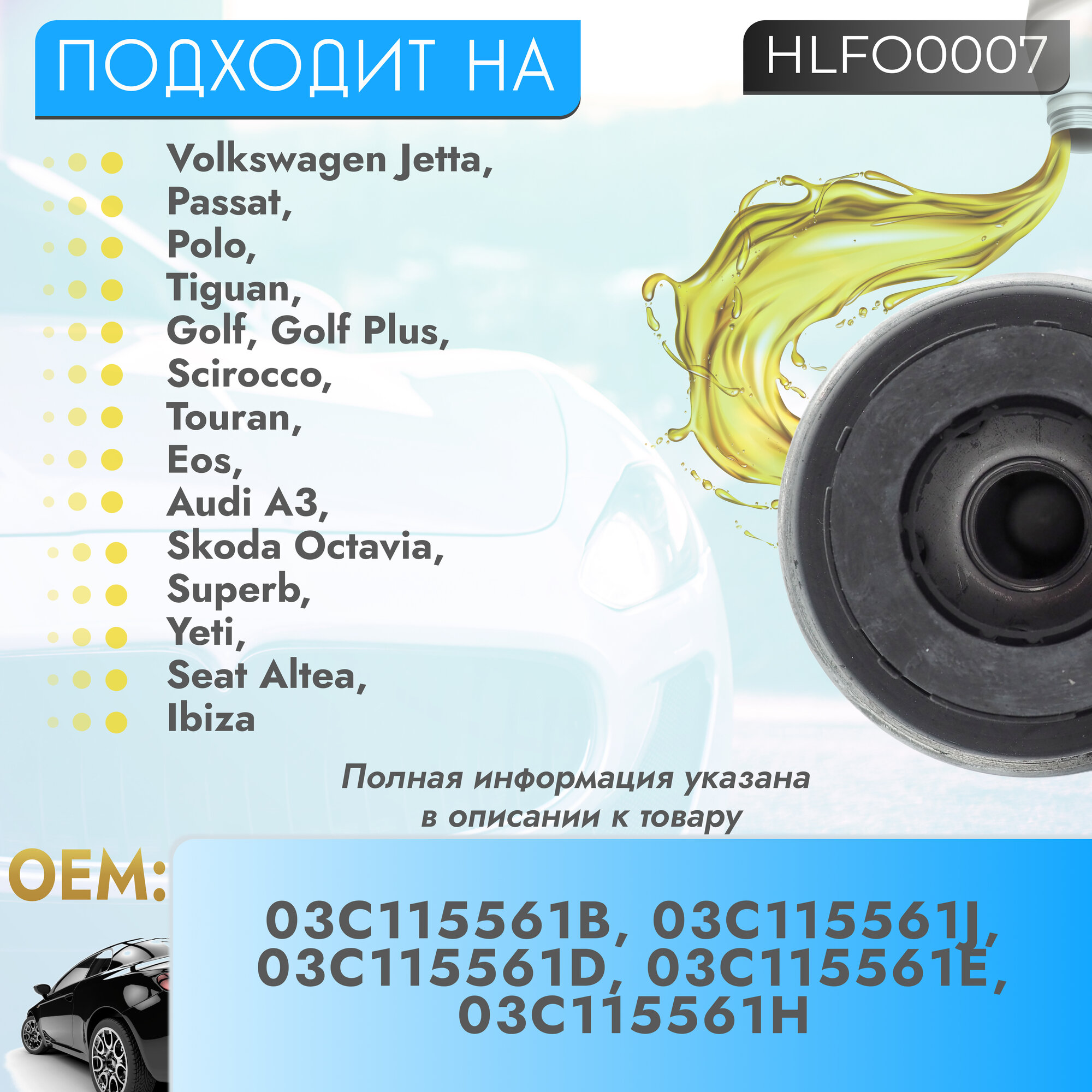 | Модель автомобиля | Audi A3 / Seat Altea / Seat Ibiza / Seat Leon / Skoda Octavia / Skoda Superb / Skoda Yeti / Volkswagen Eos / Volkswagen Golf / Volkswagen Golf Plus / Volkswagen Jetta / Volkswagen Passat / Volkswagen Polo / Volkswagen Scirocco / Volkswagen Tiguan / Volkswagen Touran |