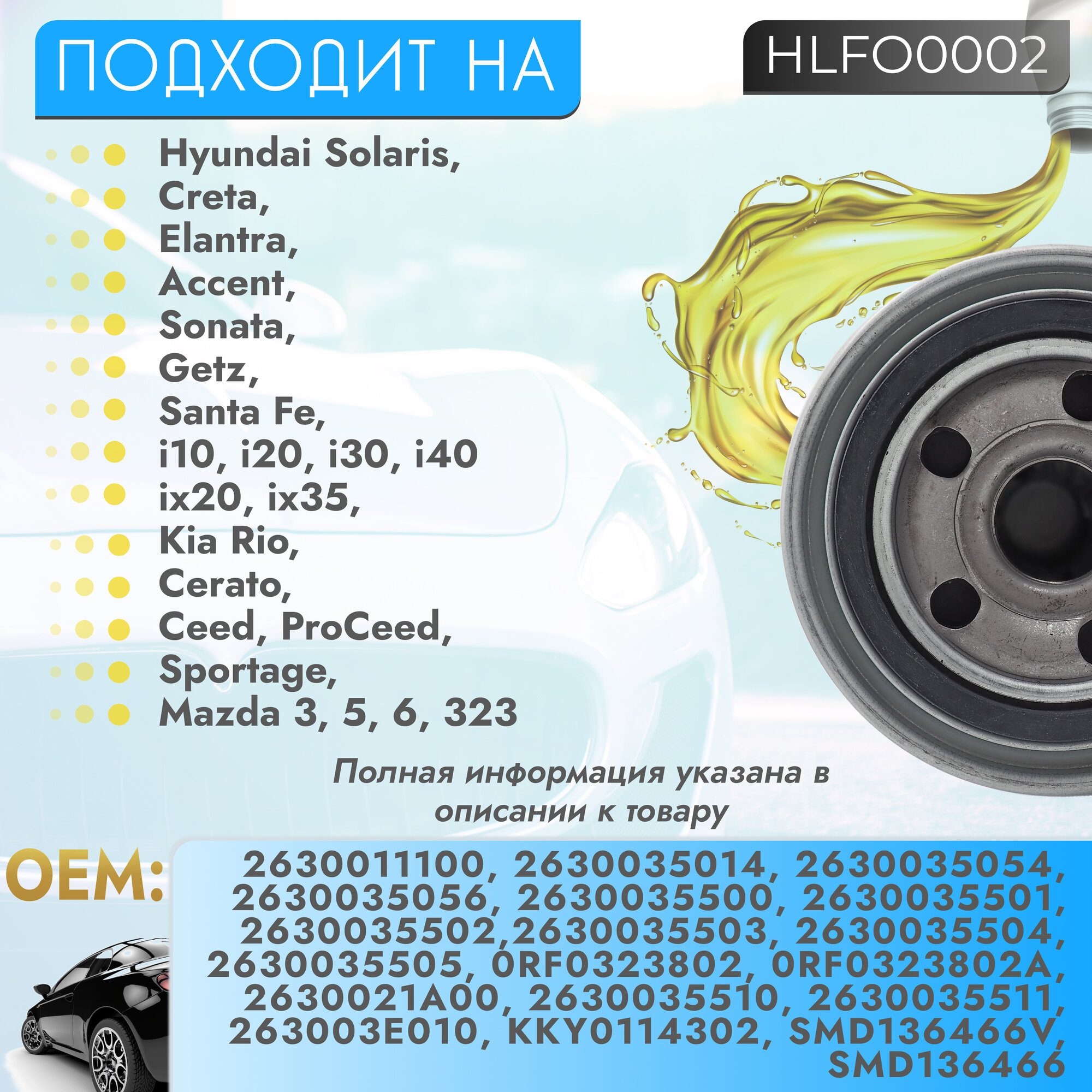 Масляный фильтр для автомобиля Kia Rio II-IV 05-, Sportage I-IV 97-, Ceed III 18-, Sorento I, II 02-, Hyundai Solaris IV 10-, Creta 16- интересное: