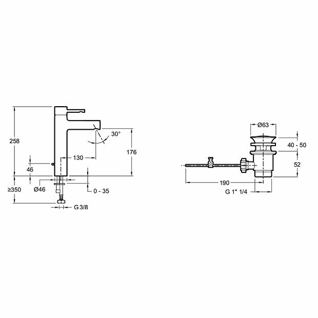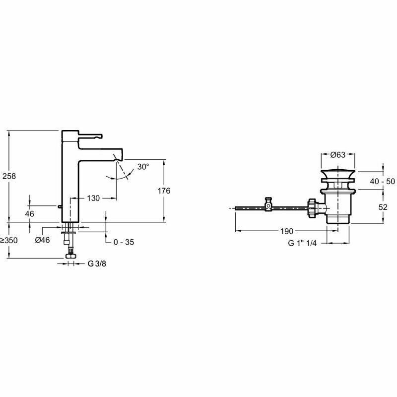 Смеситель для раковины Jacob Delafon Cuff E37303-CP с донным клапаном