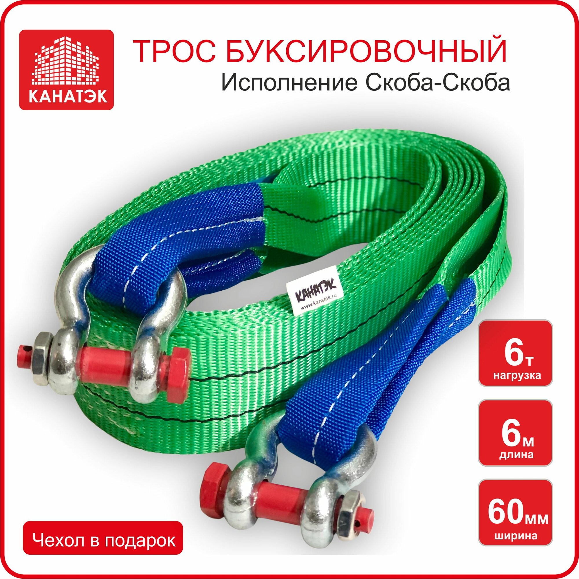 Трос буксировочный канатэк 6т/6м (скоба-скоба). Стандарт. /Буксировочный ремень для авто до 3т. интересное: