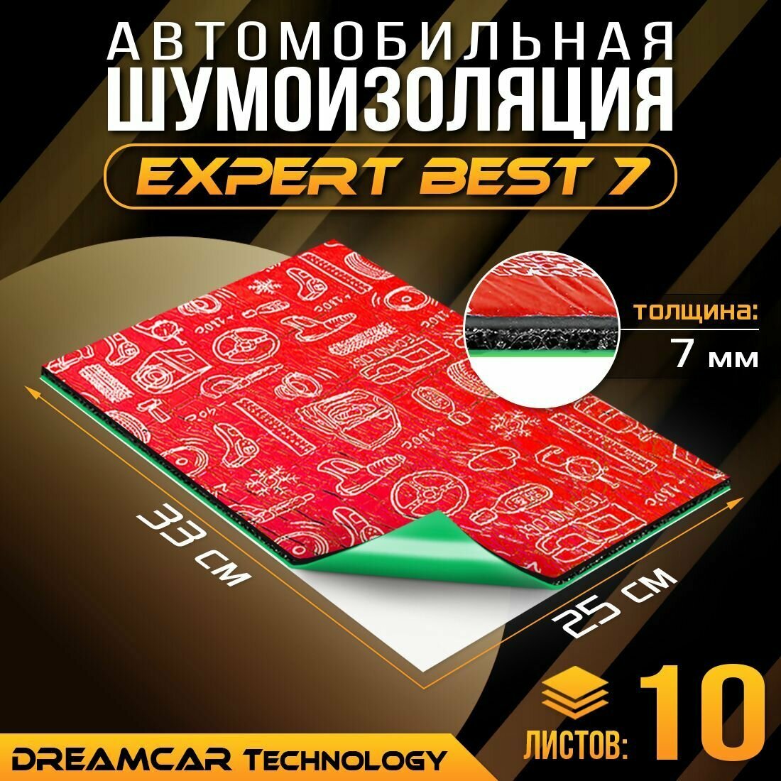 Шумоизоляция для автомобиля DreamCar Expert Best 7 33*25 см, 10 листов, шумка для второго слоя
