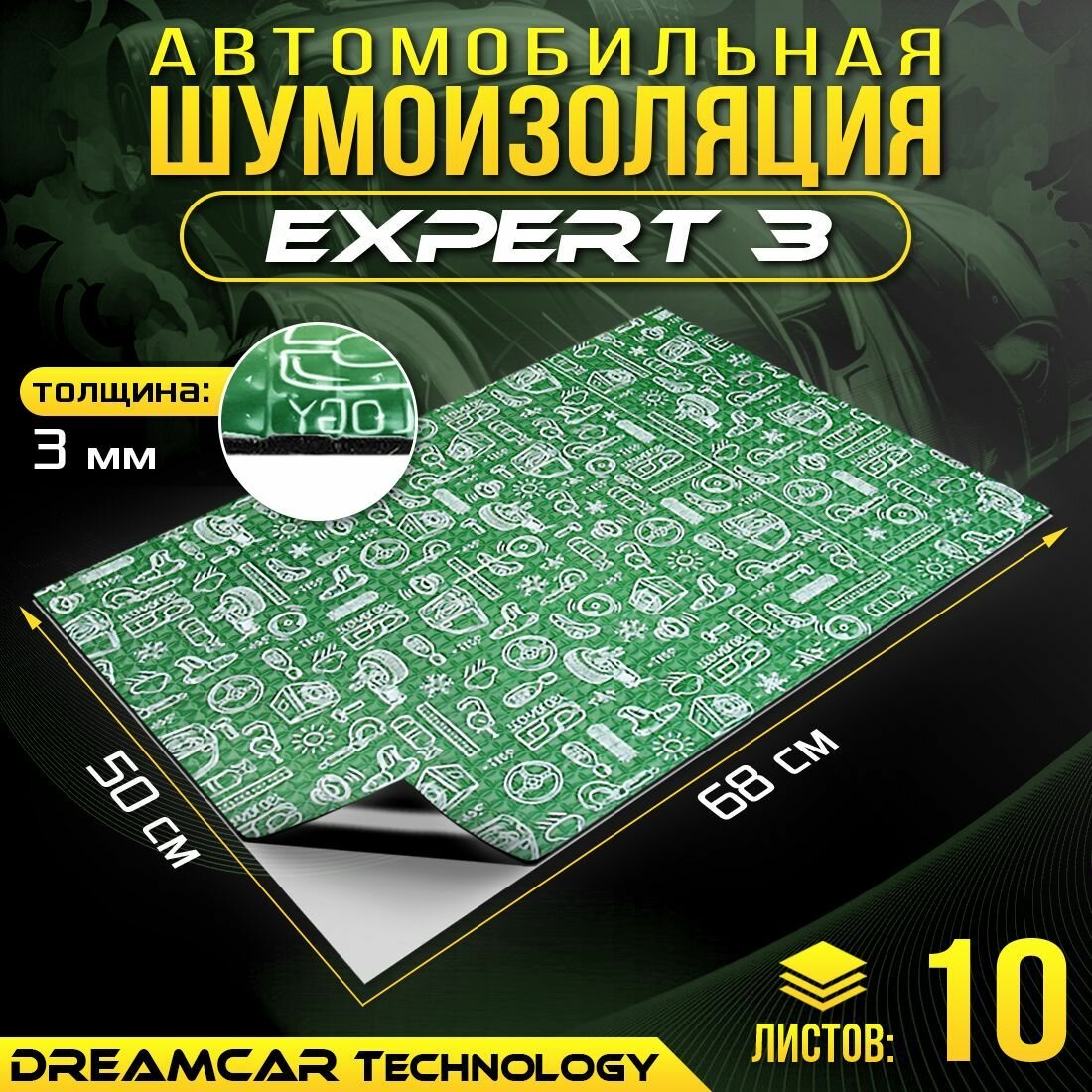 Купить DreamCar Technology 10шт Виброизоляция для профессионалов DreamCar Expert 3мм 0.68х0.5м 10 листов