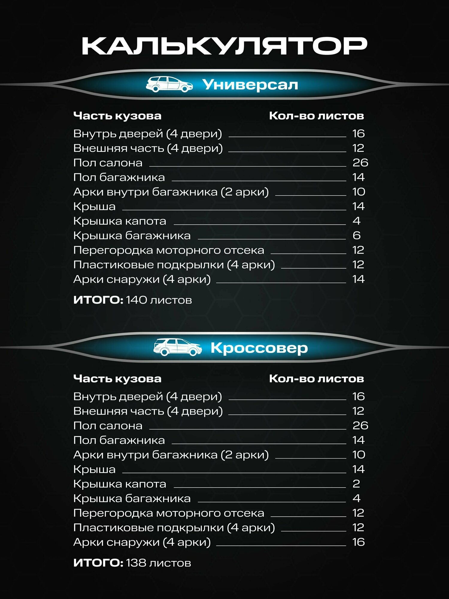 | Место применения | для арок / для багажника / для дверей / для зазоров / для капота / для пола / для потолка |