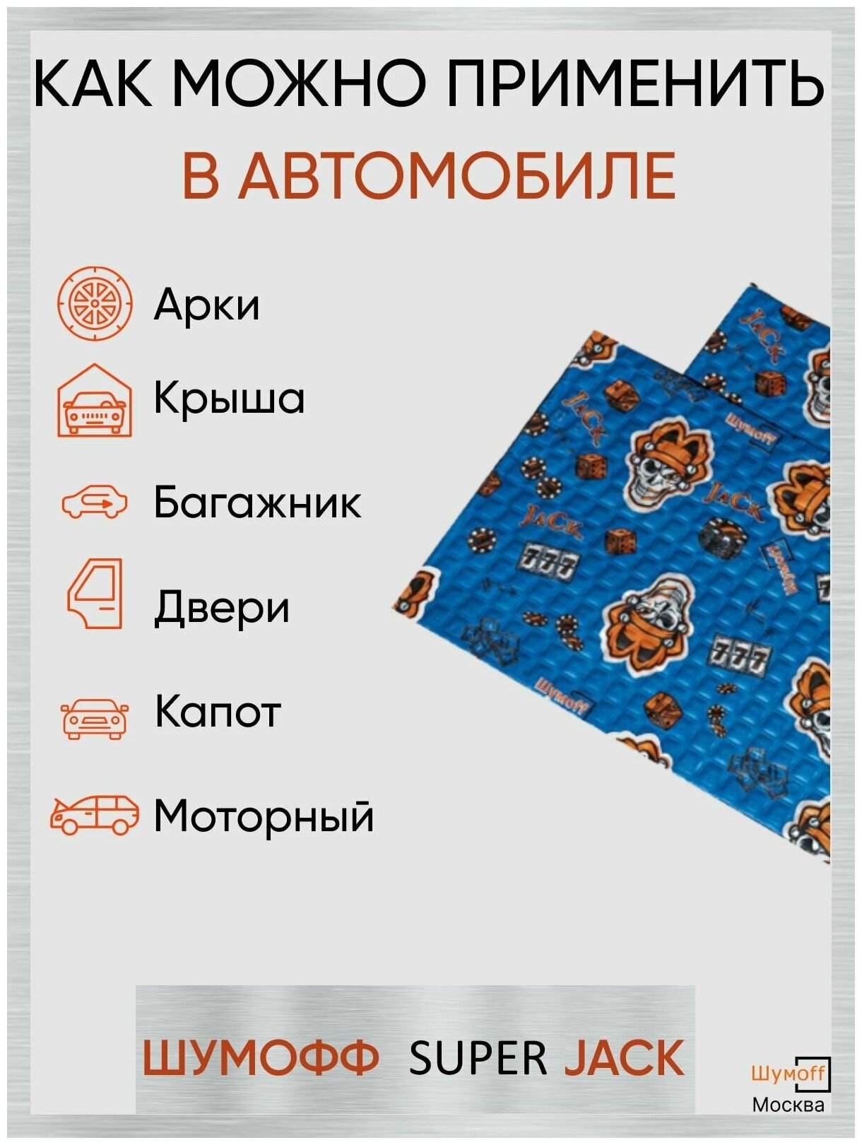 Виброизоляция для авто Шумофф Джокер Jack - 8 листов 37х27см, Шумоизоляция автомобиля, Звукоизоляция
