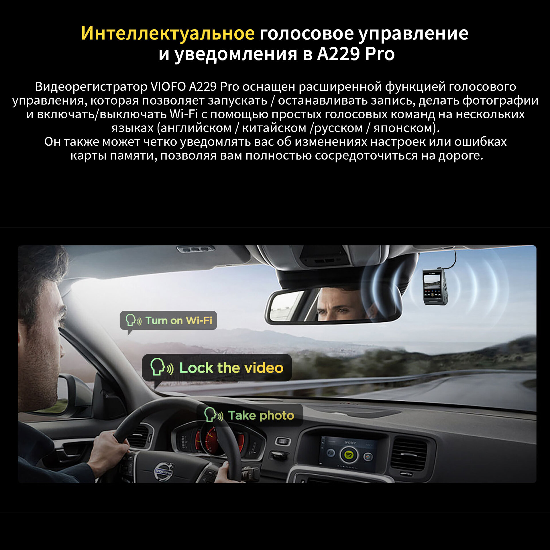 Автомобильный трехканальный видеорегистратор VIOFO A229 PRO 3CH c GPS и WIFI интересное: