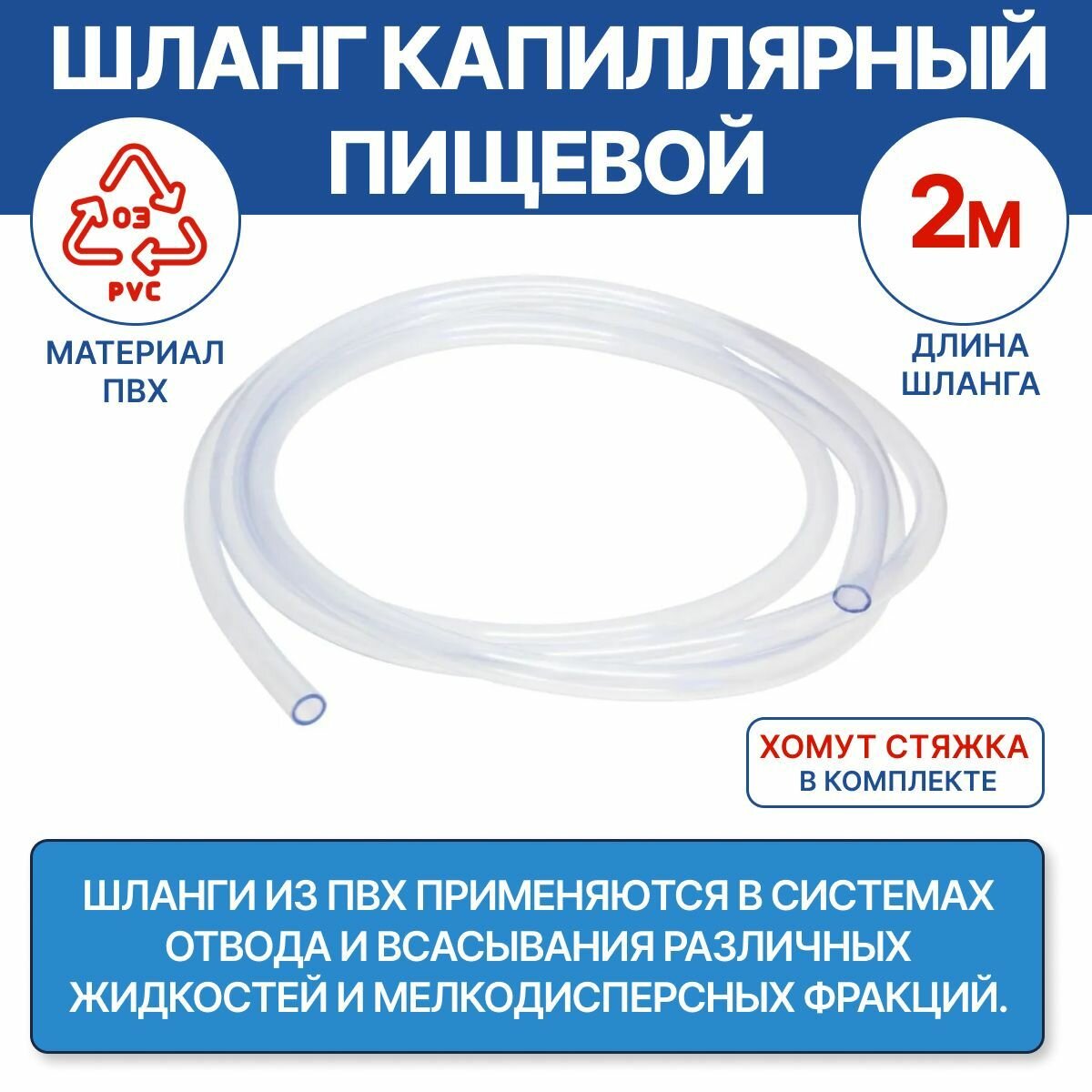 Шланг капиллярный 6 х 8 мм, 2 м, хомут-стяжка в комплекте