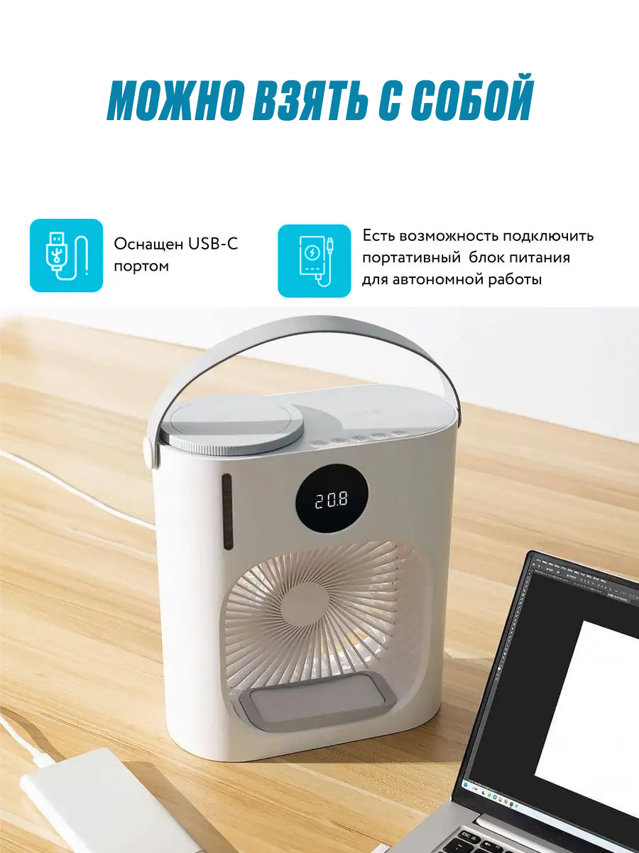Портативный охладитель воздуха Lydsto CL08 (L200) Global 3-в-1, вентилятор, кондиционер, увлажнитель, от USB, белый интересное: