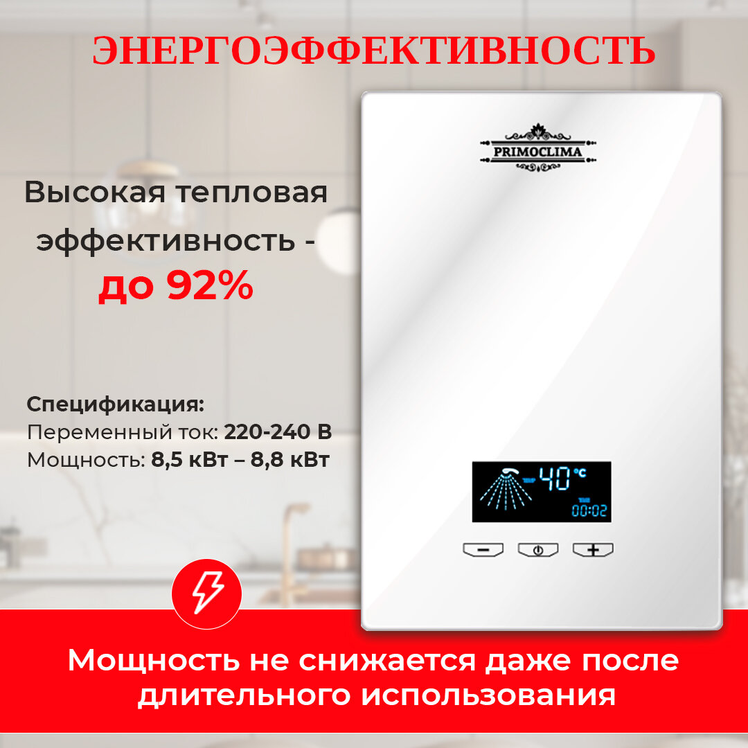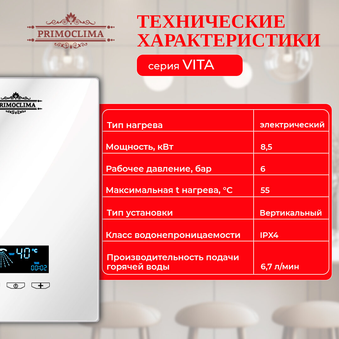 Электрический проточный водонагреватель PRIMOCLIMA VITA 8.5 кВт, белый интересное: