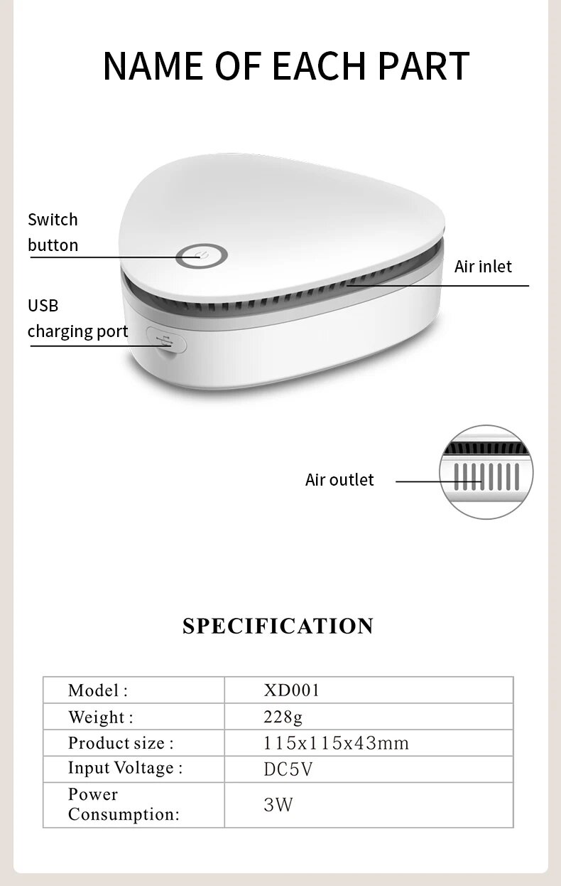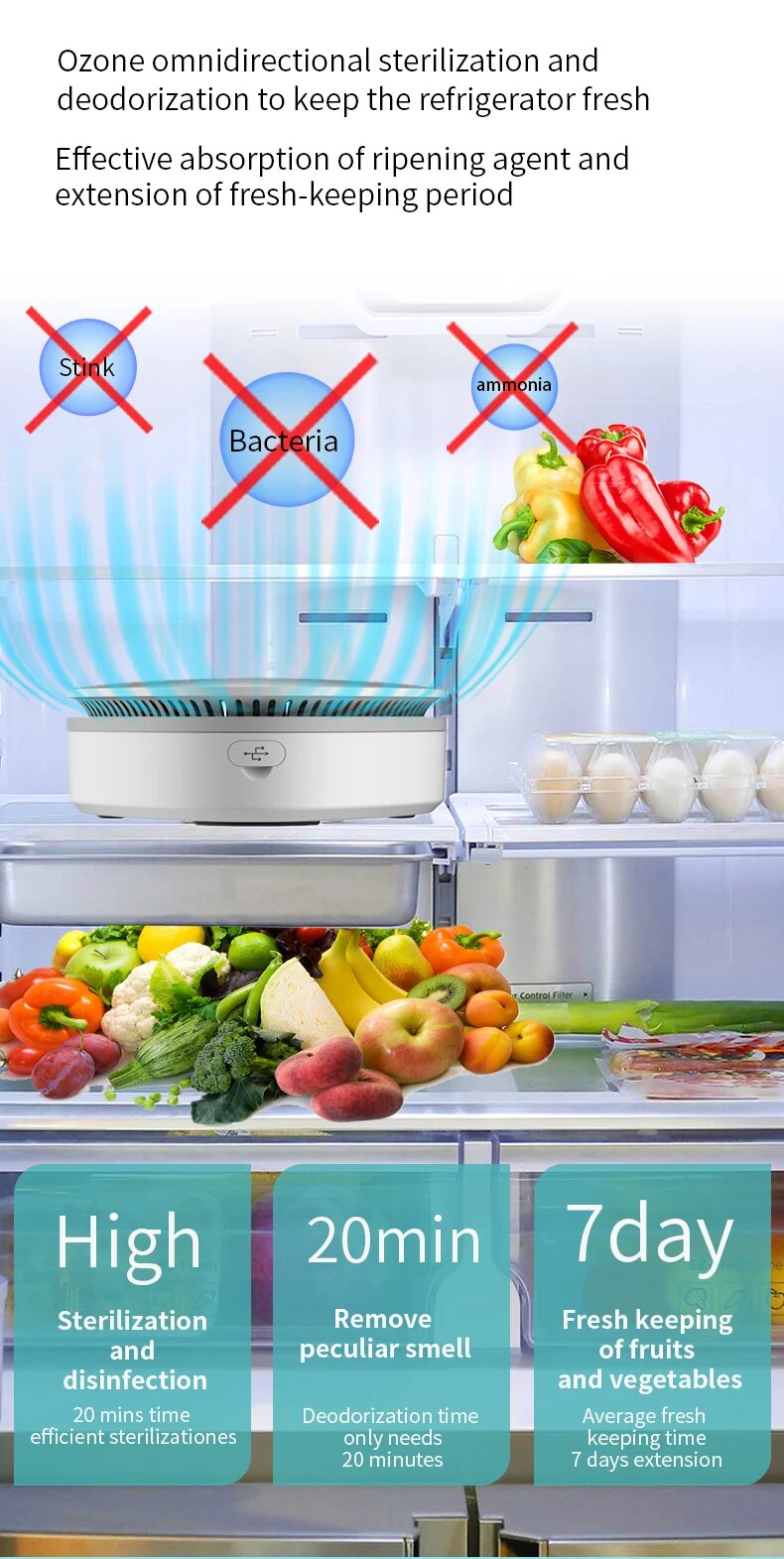 Генератор озона для холодильника, освежитель еды, портативный очиститель воздуха, USB зарядка, автомобильный стерилизатор, очиститель дыма, удаление запаха