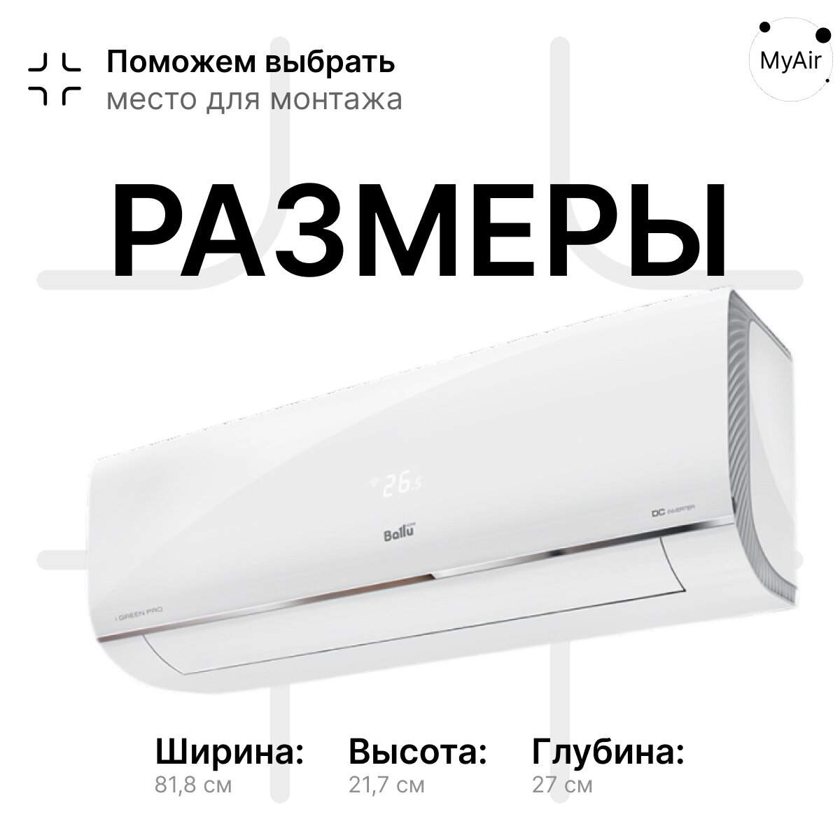 | Размеры внутреннего блока сплит-системы или мобильного кондиционера (ШxВxГ) | 81.8x27x21.7 см |