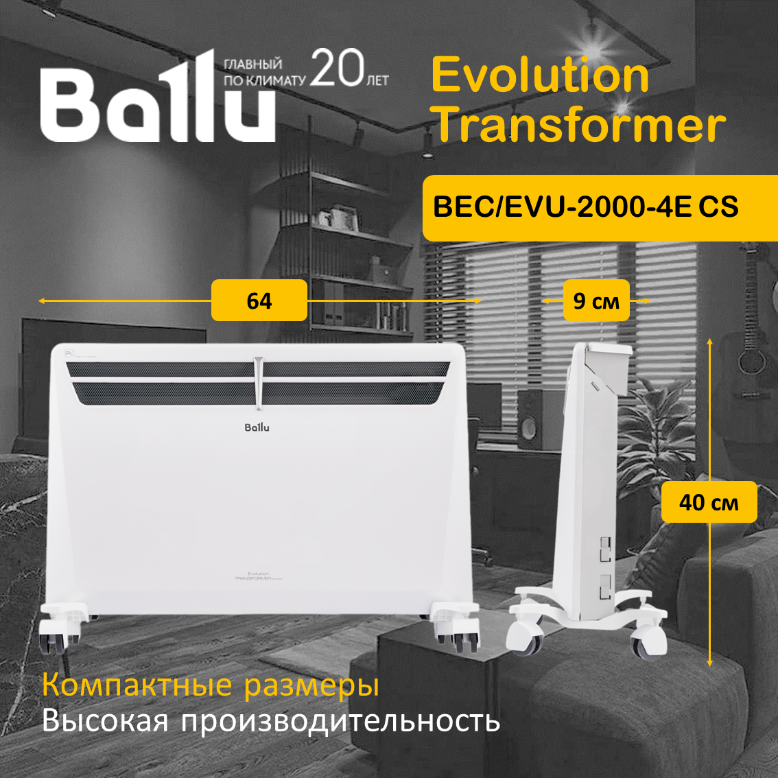 Купить Конвектор Ballu BEC/EVU-2000-4E CS Evolution Transformer с электронным управлением, ножками и WiFi