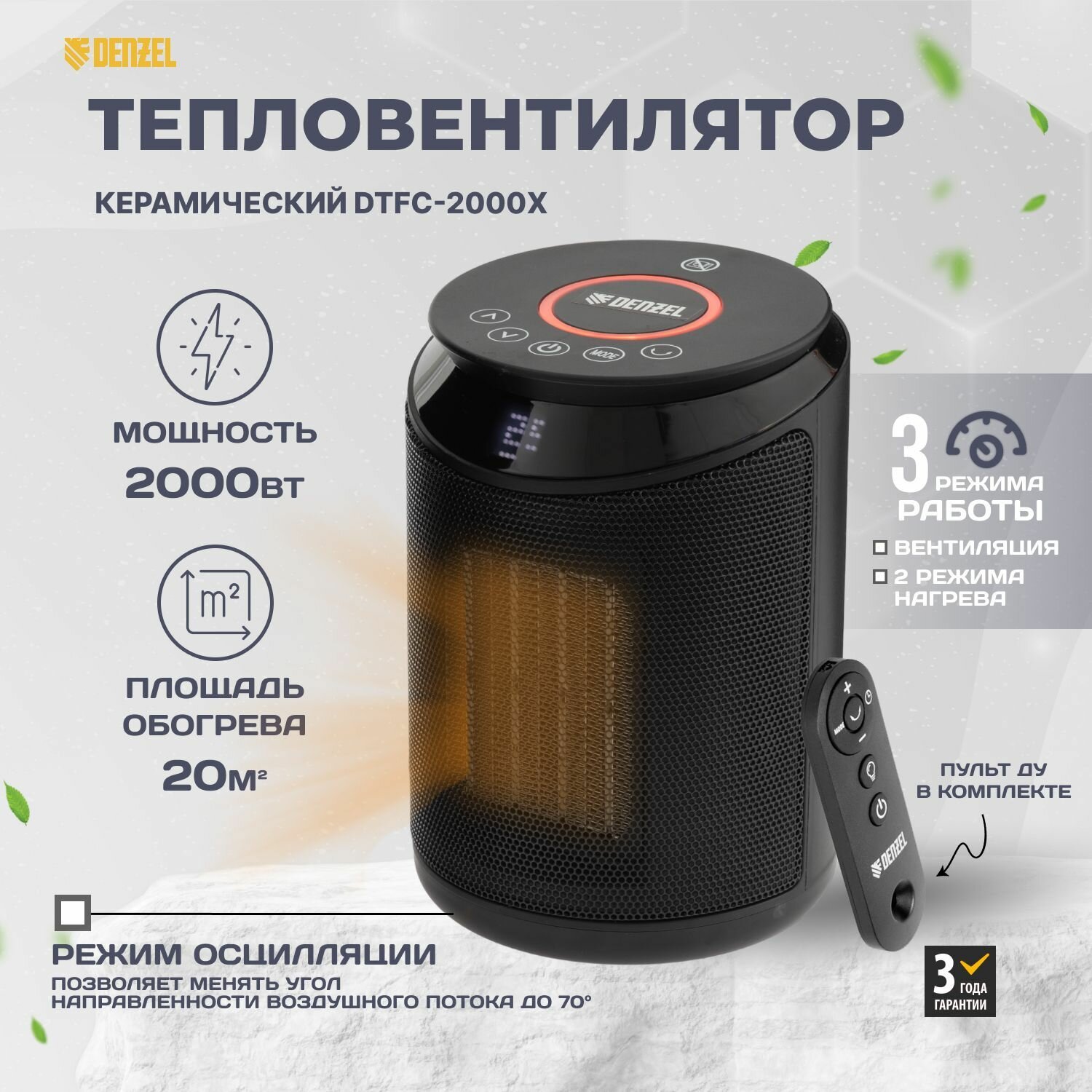 Купить Тепловентилятор керамический DTFC-2000X, 2 кВт, wi-fi, пульт, динамик, вращение, 3 реж. // Denzel