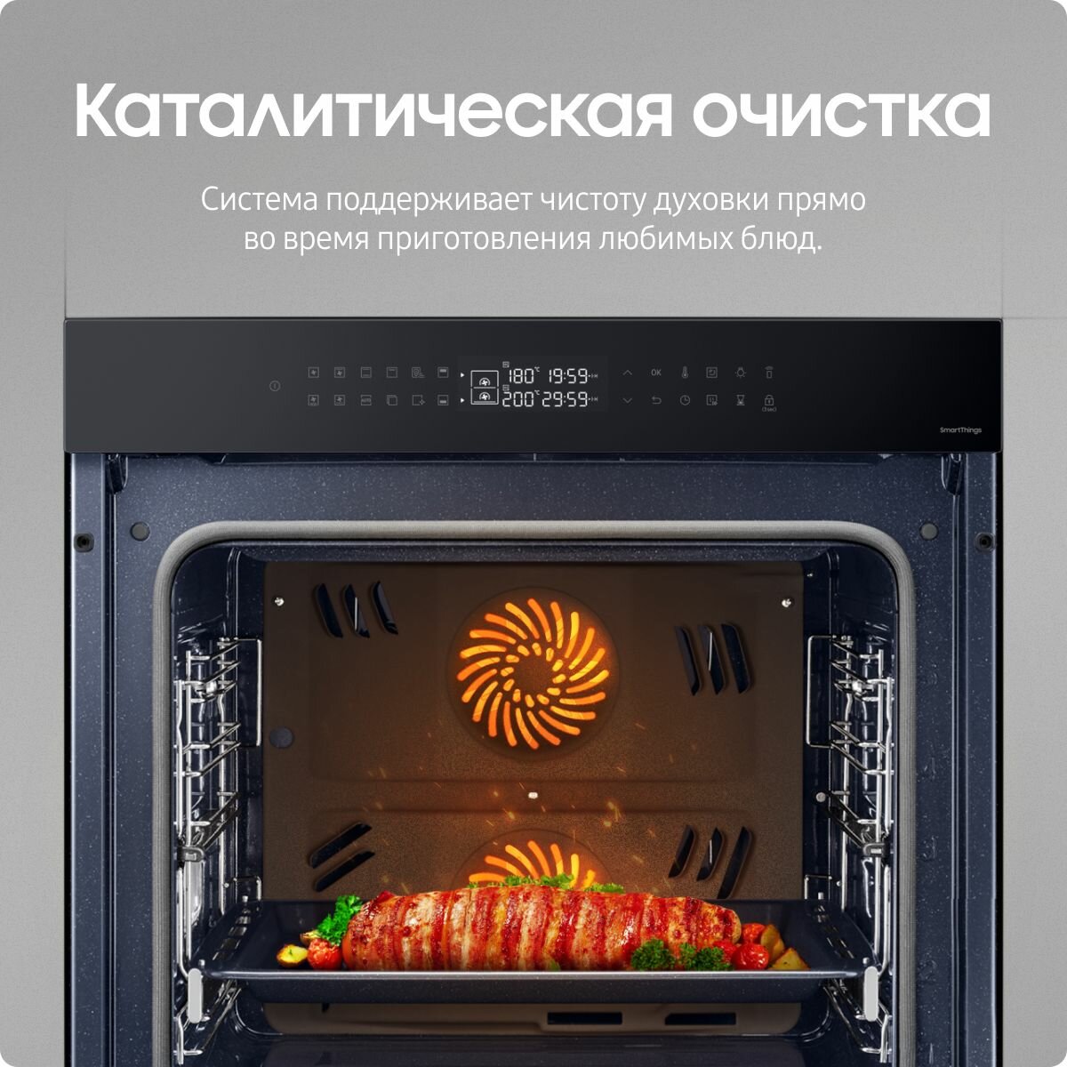 Электрический духовой шкаф для кухни Samsung NV7B4225ZAK/WT 76 л, с конвекцией, 50 автопрограммами, телескопическими направляющими, сенсорным управлением, таймером и защитой от детей, черный интересное: