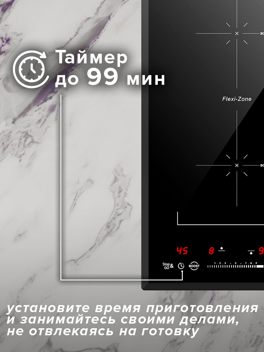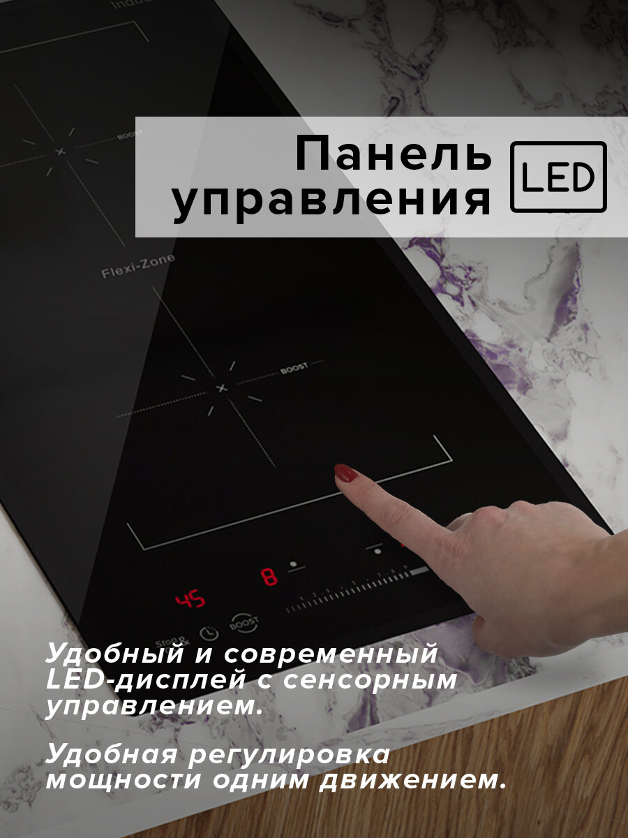 | Функции | распознавание наличия посуды / распознавание размера посуды / таймер / Функция Booster / функция Flex Zone |