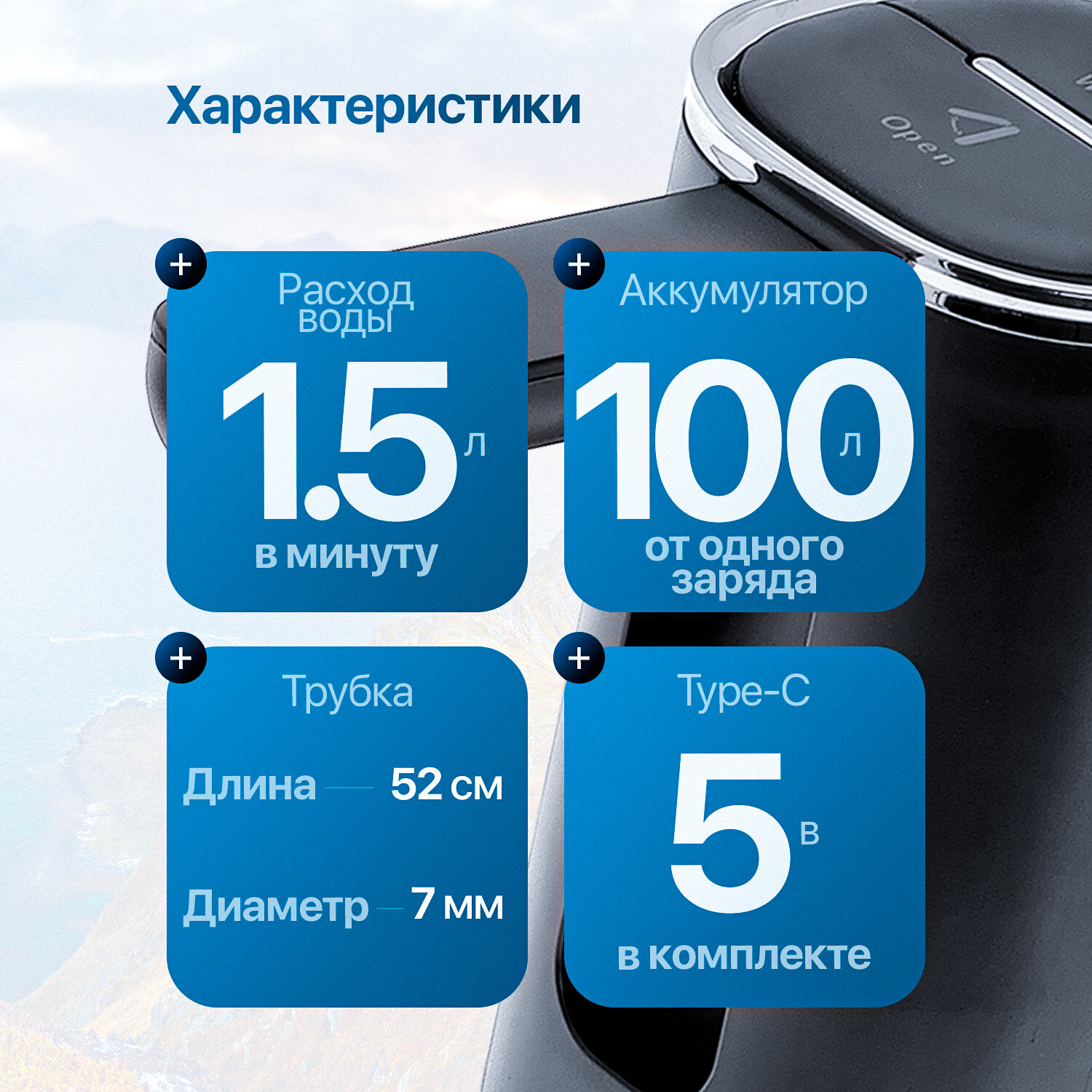 | Комплектация | Помпа со встроенным аккумулятором, кабель USB Type-C (50 см), шланг (52 см), инструкция на Русском |