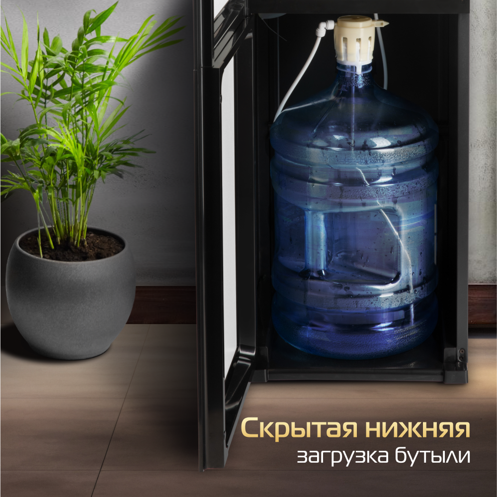 Кулер для воды HIBERG UF 95 B напольный, электронное охлаждение, сенсорное управление, цвет черное стекло
