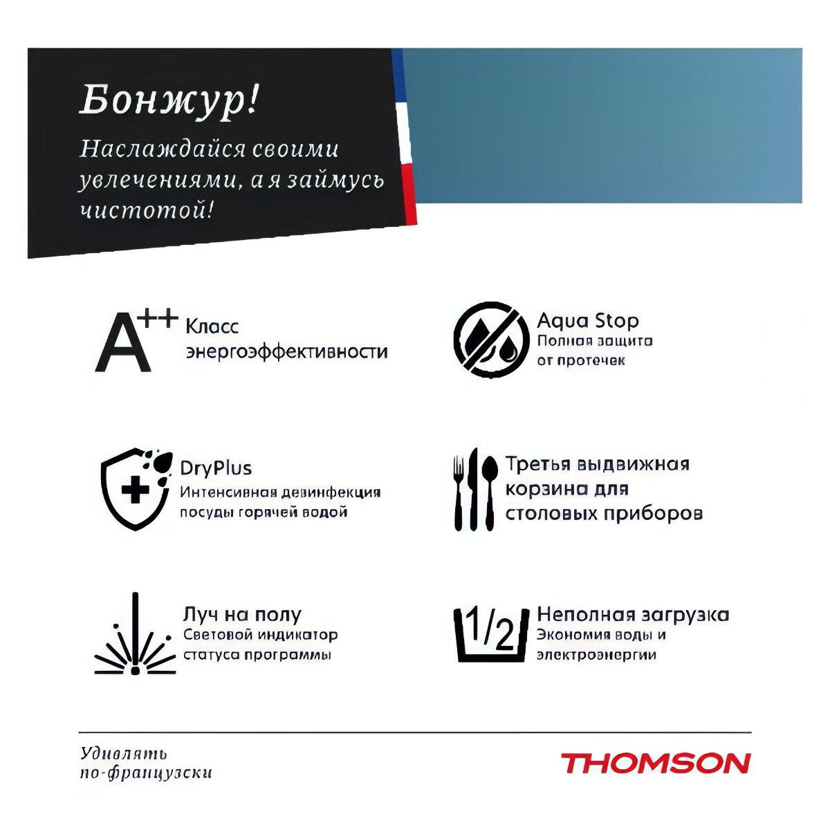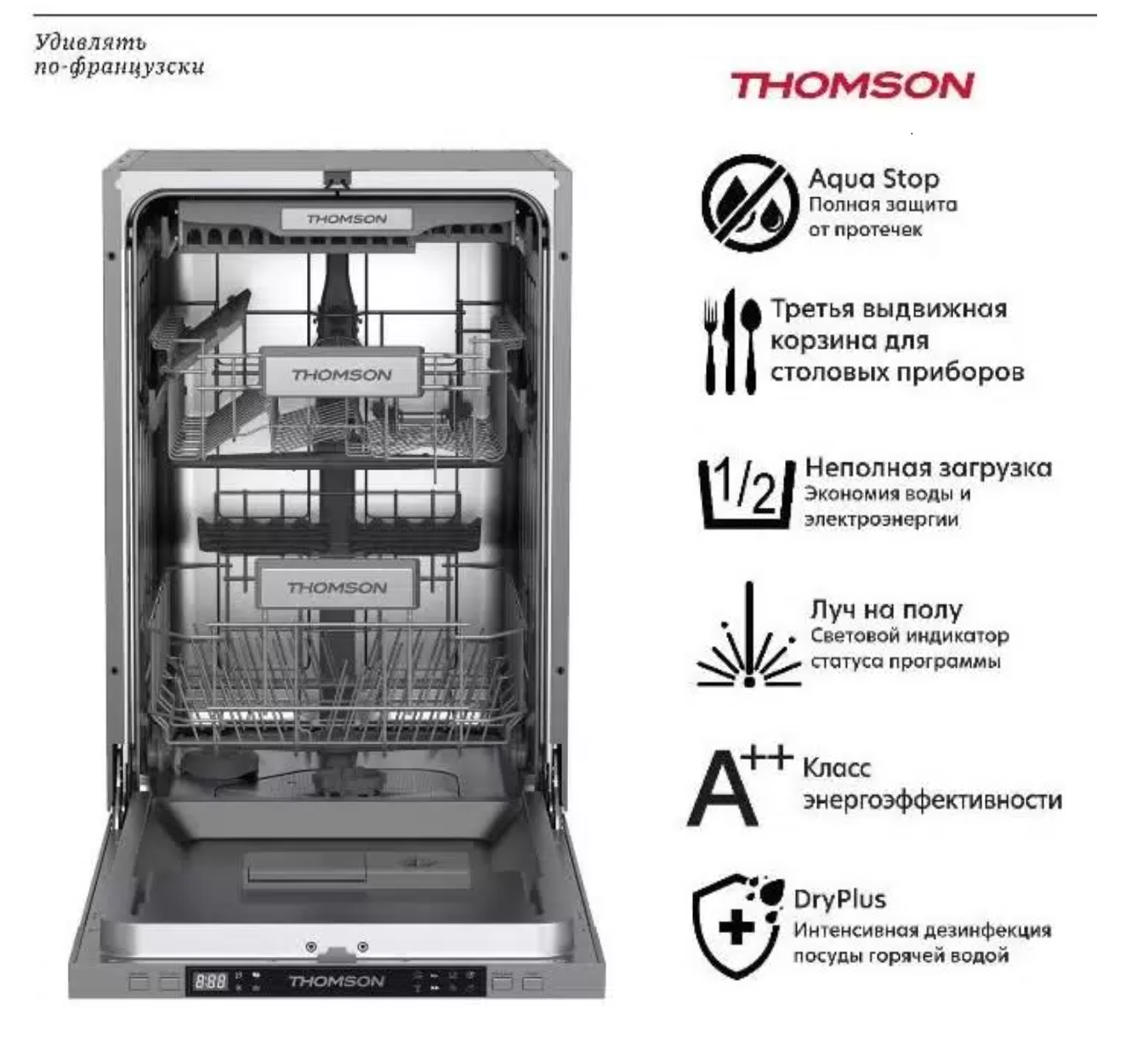 Встраиваемая посудомоечная машина 45 см Thomson DB30S73E02 интересное: