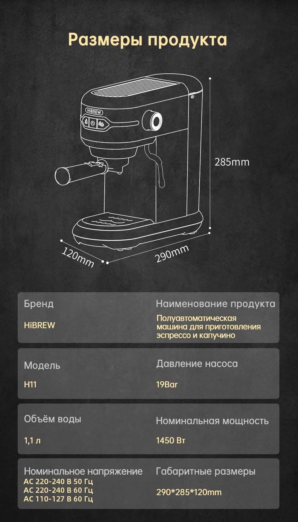 Купить HiBREW H11 Кофеварка 19 бар Inox полуавтоматическая Супер тонкая японская капсула и порошок Эспрессо машина для капучино горячая вода
