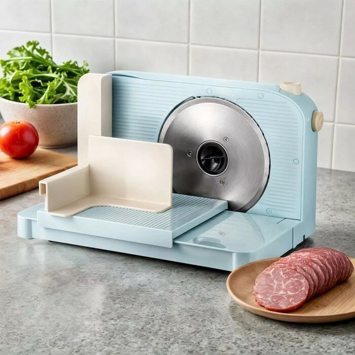 Ломтерезка Kitfort КТ-6268, 150 Вт, толщина нарезки до 15 мм, голубая интересное: