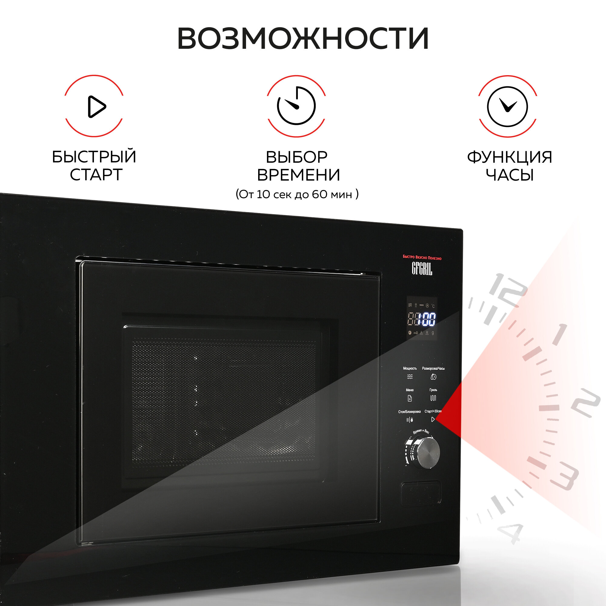 GFGRIL Микроволновая печь встраиваемая GF-MWO2370BI, 23 л, гриль, 800 Вт, автопрограммы, цвет черный интересное: