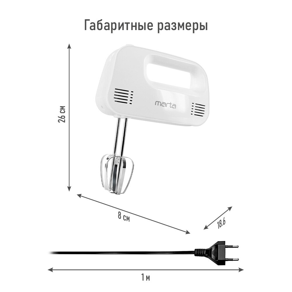 MARTA MT-MX1524A белый жемчуг миксер без чаши интересное:
