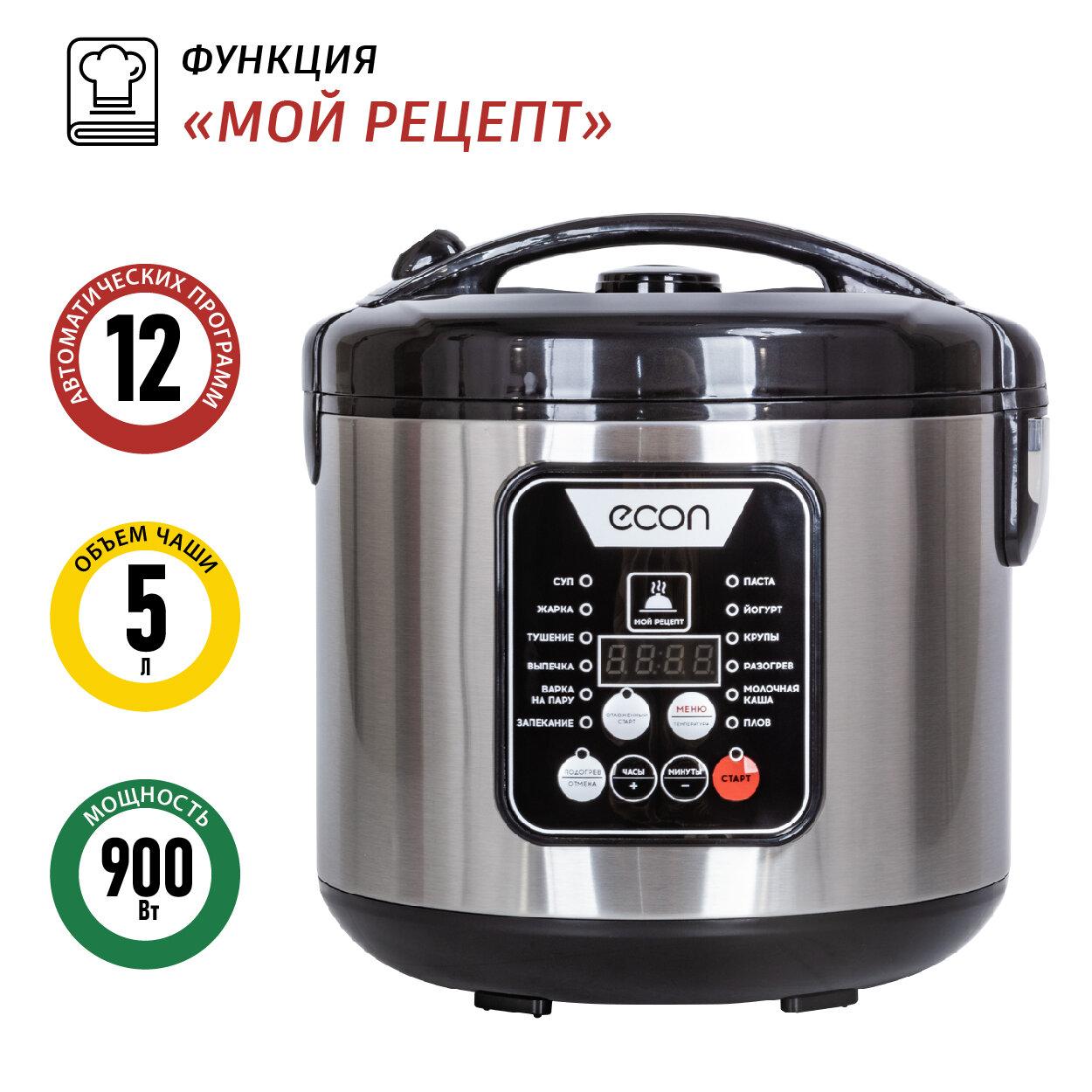 Мультиварка ECON ECO-50MC 5 литров, с антипригарной чашей, 12 авто программ и функция "Мой рецепт", 900 Вт