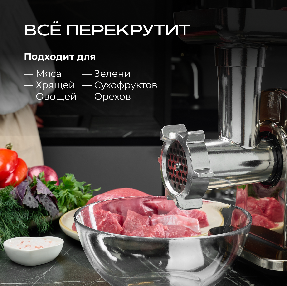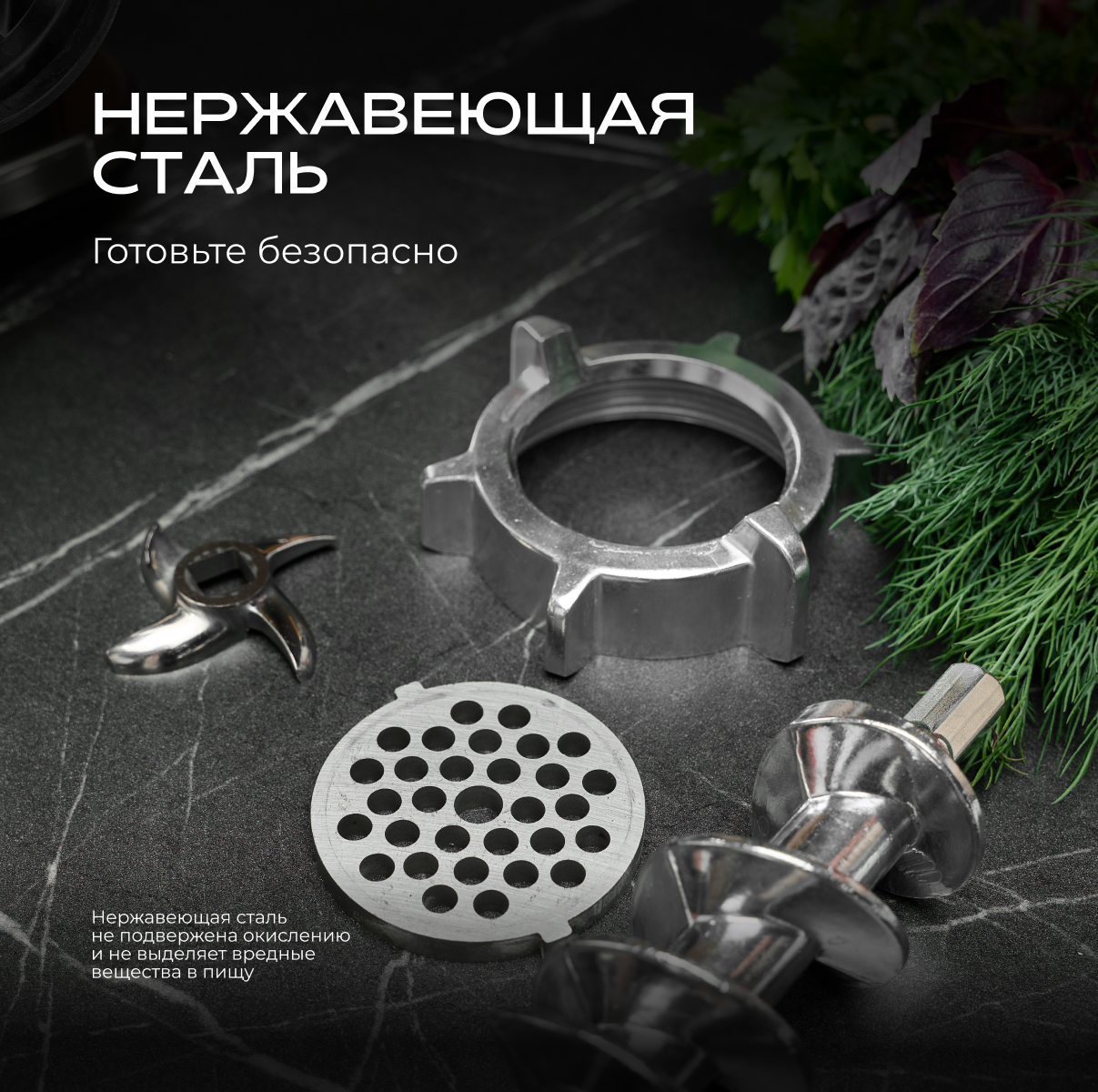 | Насадки | диск для фарша / насадка для кеббе / насадка для приготовления колбас |