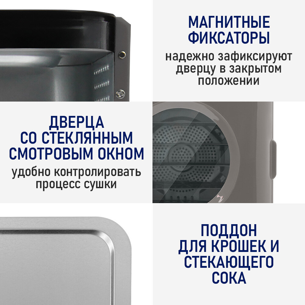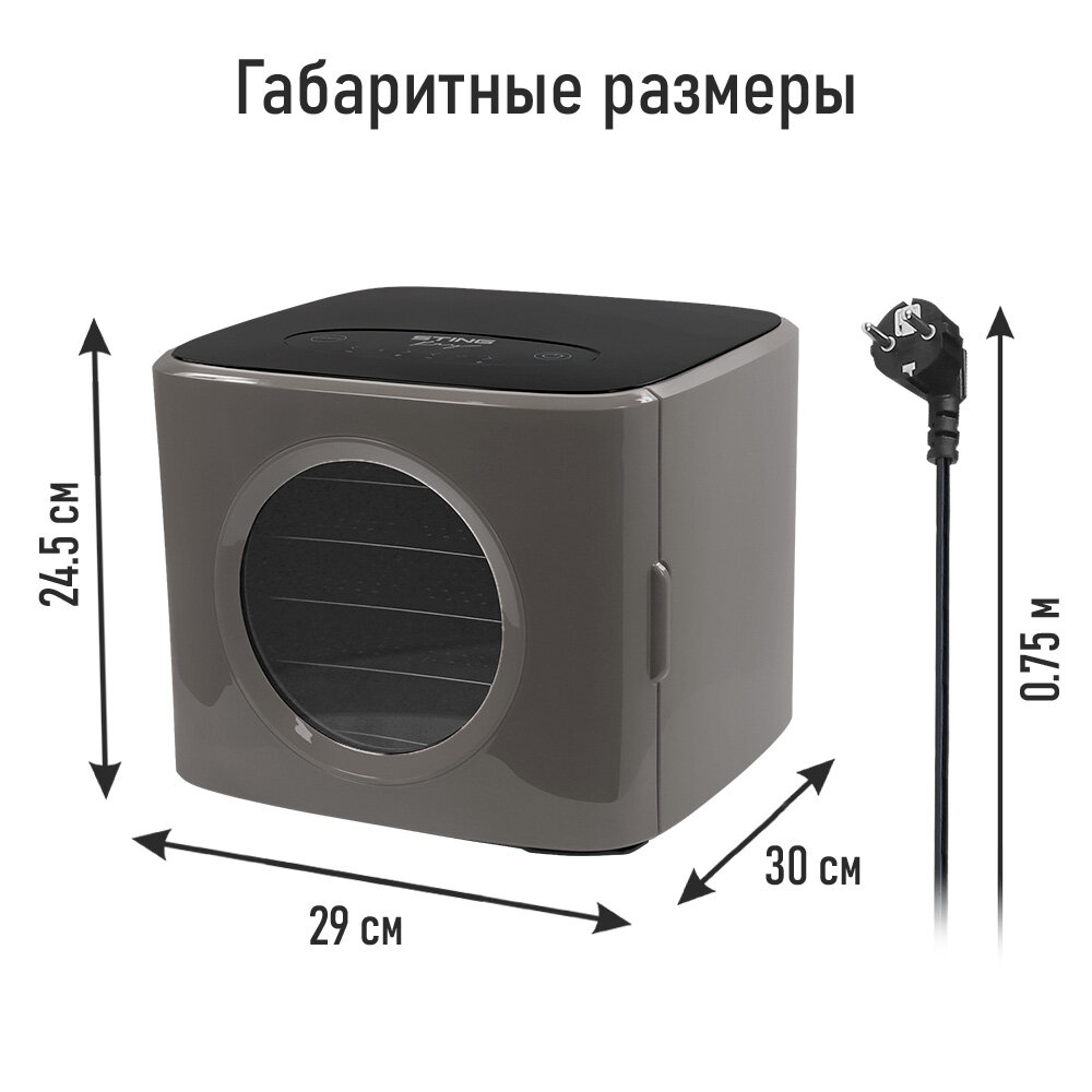STINGRAY ST-FD727A 15 поддонов: 5+5 для ягод+5 для пастилы черный/серый сушилка д/фруктов,овощей интересное: