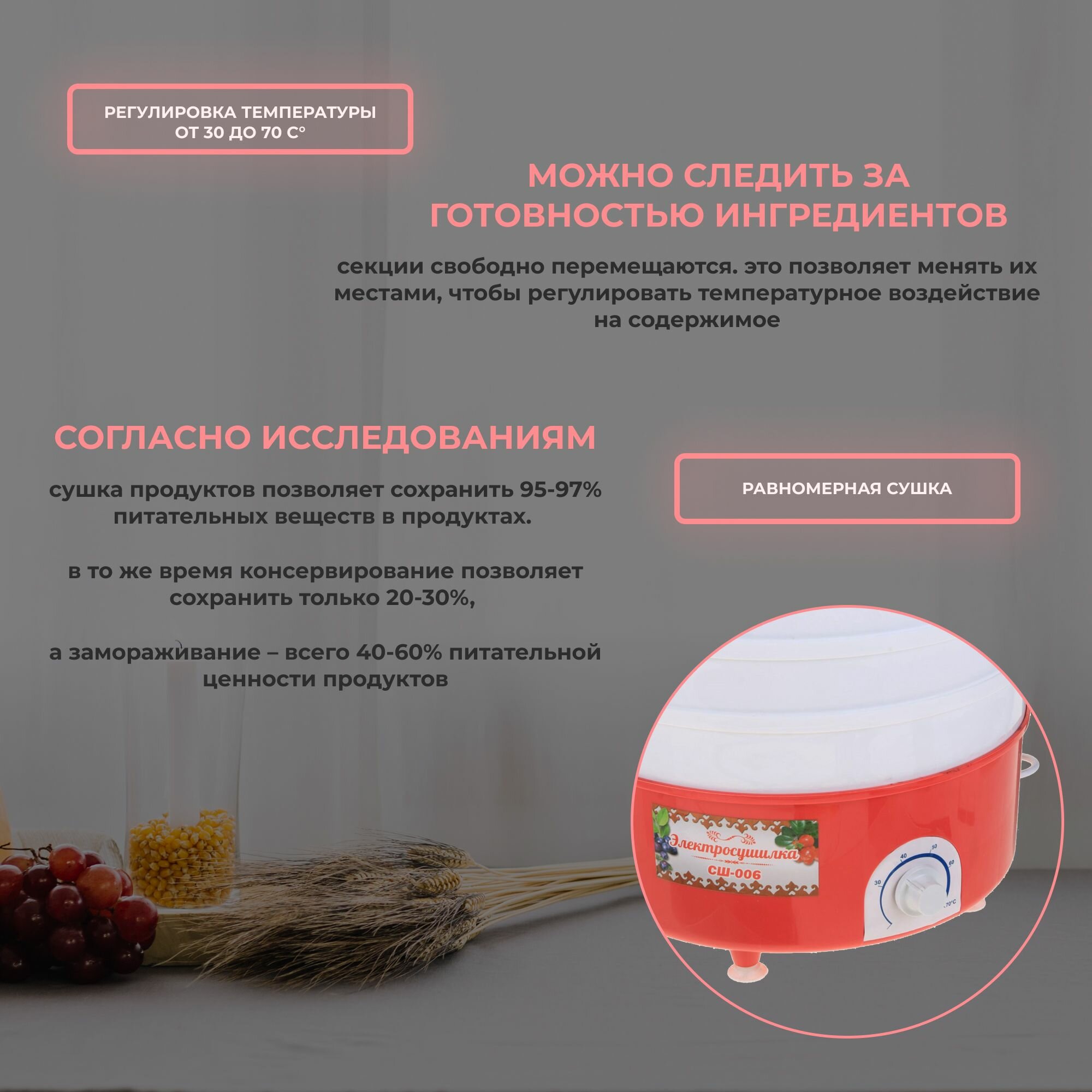 Сушилка для овощей и фруктов СШ-006, 520 Вт, 5 ярусов, красно-белая